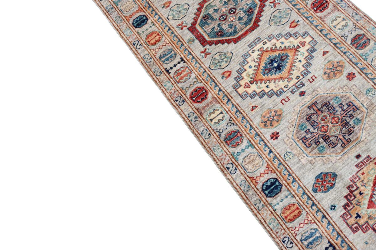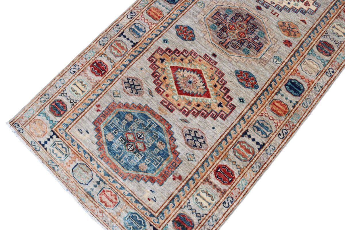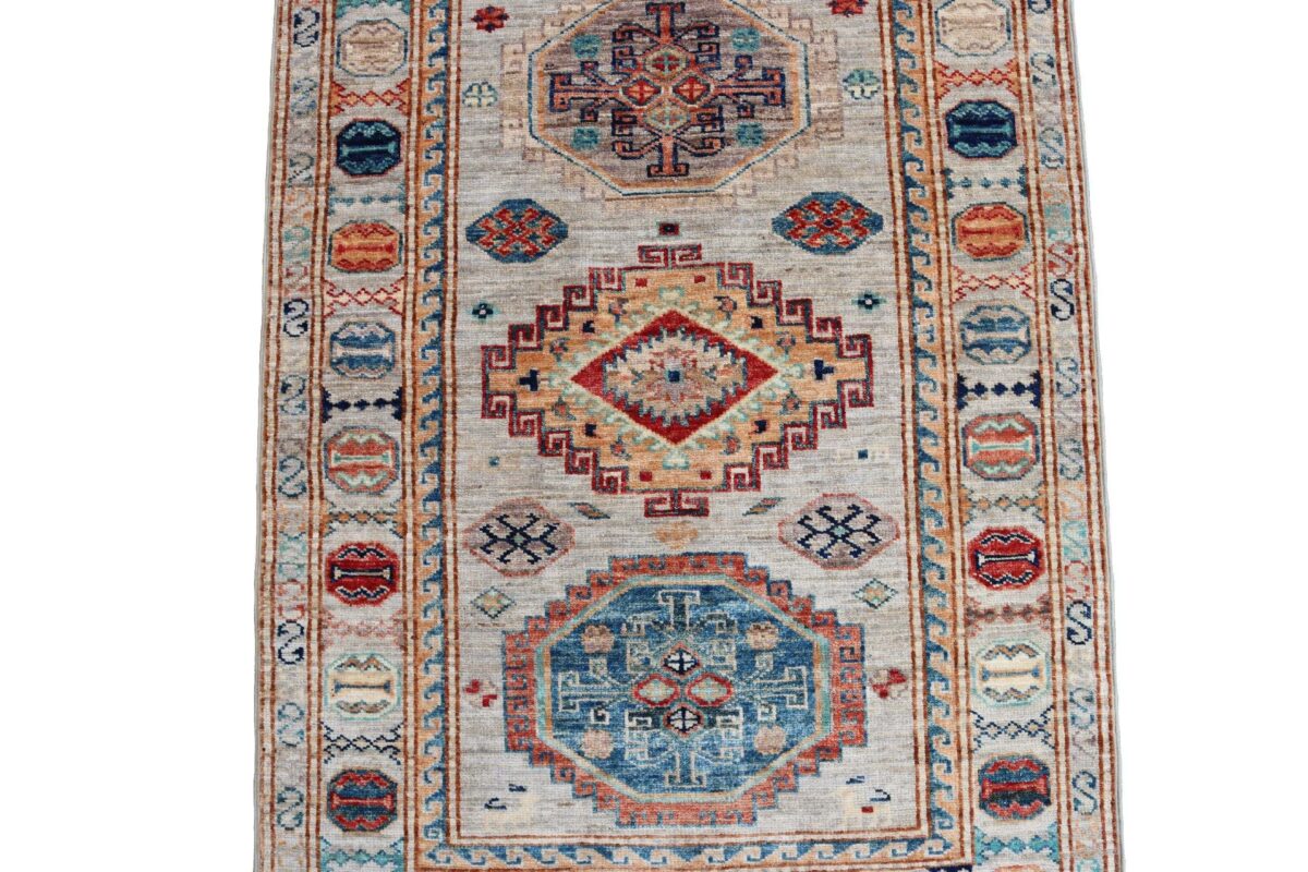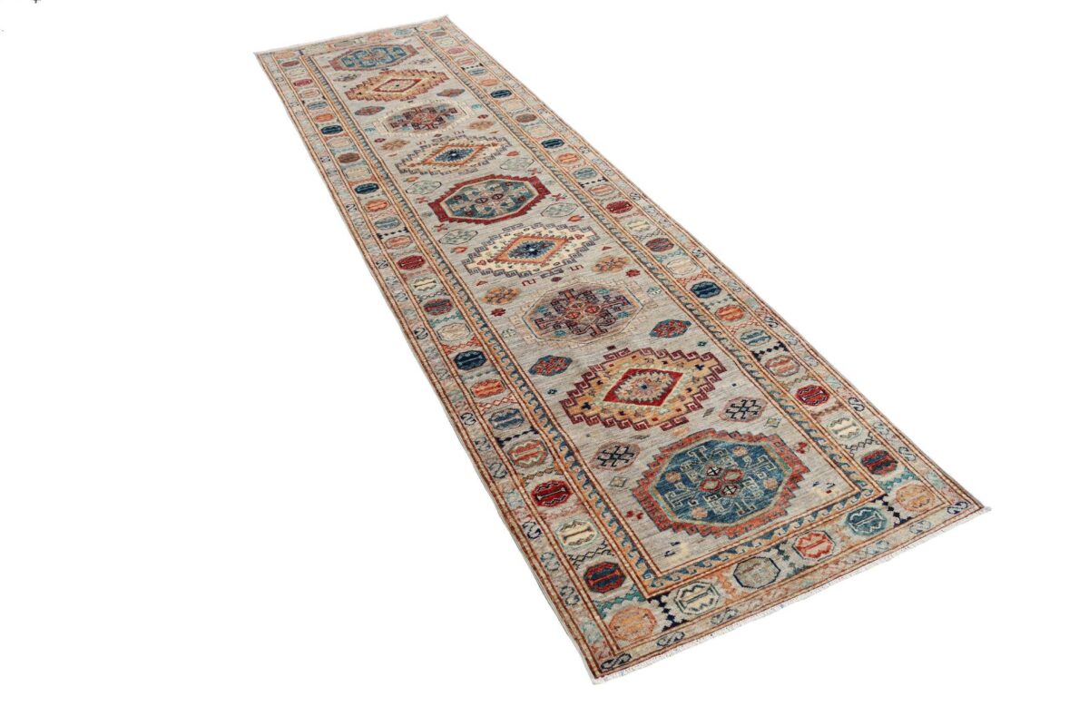 Mit ihren klaren, geometrischen Mustern sind kaukasische Teppiche eine ideale Ergänzung zu zeitgenössischen Einrichtungen und werden auch wegen ihrer Robustheit gerne nachgefragt. Wer sich für kaukasische Teppiche interessiert, kann selbstverständlich bei uns ausgewählte Exemplare online kaufen. Zu den geläufigsten kaukasischen Teppichen zählt der Kazak-Orientteppich, der hauptsächlich im Knüpfgebiet nördlich des Sewansees angefertigt wird. Das Kazak-Design weist die typischen kaukasischen Geometrieformen auf, manchmal mit zierlichen Details wie vereinfachten Tierdarstellungen. Ein Kazak-Orientteppich beeindruckt außerdem durch seine harmonische Farbgebung. So mancher Betrachter staunt über den gelungenen Einsatz von Türkis- und Grüntönen, der in dieser hochgradig-ästhetischen Form bei Orientteppichen selten ist. Beachtenswert sind ebenso die feinsinnig gestalteten Abschlüsse an den Teppichseiten eines Kazaks. Für den Flor wird reine Schurwolle mit türkischen Knoten auf Baumwollkette verarbeitet, wobei die durchschnittliche Knüpfung mit etwa 220.000 Knoten/m² als fein anzusehen ist. Online kaufen lassen sich außerdem sehr begehrte antike Kazak-Teppiche mit extra-feiner Knüpfung, die zur Gänze aus Schurwolle bestehen.