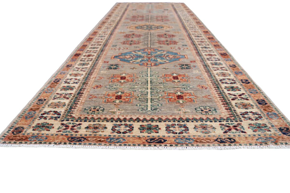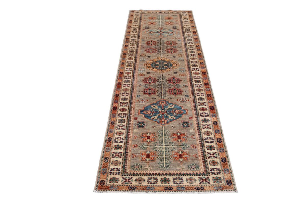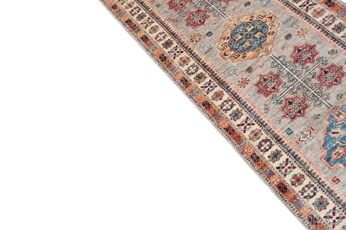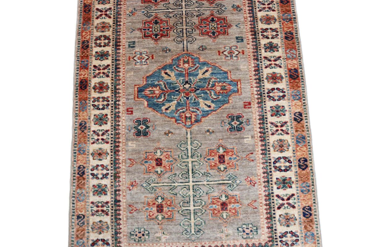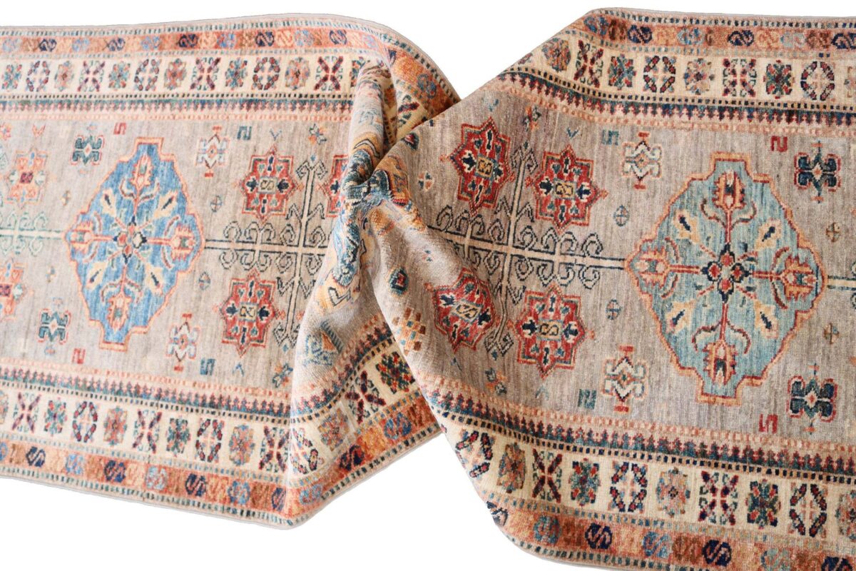 Mit ihren klaren, geometrischen Mustern sind kaukasische Teppiche eine ideale Ergänzung zu zeitgenössischen Einrichtungen und werden auch wegen ihrer Robustheit gerne nachgefragt. Wer sich für kaukasische Teppiche interessiert, kann selbstverständlich bei uns ausgewählte Exemplare online kaufen. Zu den geläufigsten kaukasischen Teppichen zählt der Kazak-Orientteppich, der hauptsächlich im Knüpfgebiet nördlich des Sewansees angefertigt wird. Das Kazak-Design weist die typischen kaukasischen Geometrieformen auf, manchmal mit zierlichen Details wie vereinfachten Tierdarstellungen. Ein Kazak-Orientteppich beeindruckt außerdem durch seine harmonische Farbgebung. So mancher Betrachter staunt über den gelungenen Einsatz von Türkis- und Grüntönen, der in dieser hochgradig-ästhetischen Form bei Orientteppichen selten ist. Beachtenswert sind ebenso die feinsinnig gestalteten Abschlüsse an den Teppichseiten eines Kazaks. Für den Flor wird reine Schurwolle mit türkischen Knoten auf Baumwollkette verarbeitet, wobei die durchschnittliche Knüpfung mit etwa 220.000 Knoten/m² als fein anzusehen ist. Online kaufen lassen sich außerdem sehr begehrte antike Kazak-Teppiche mit extra-feiner Knüpfung, die zur Gänze aus Schurwolle bestehen.