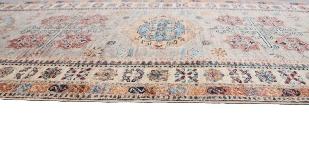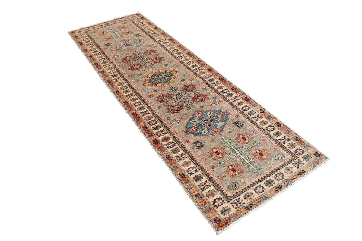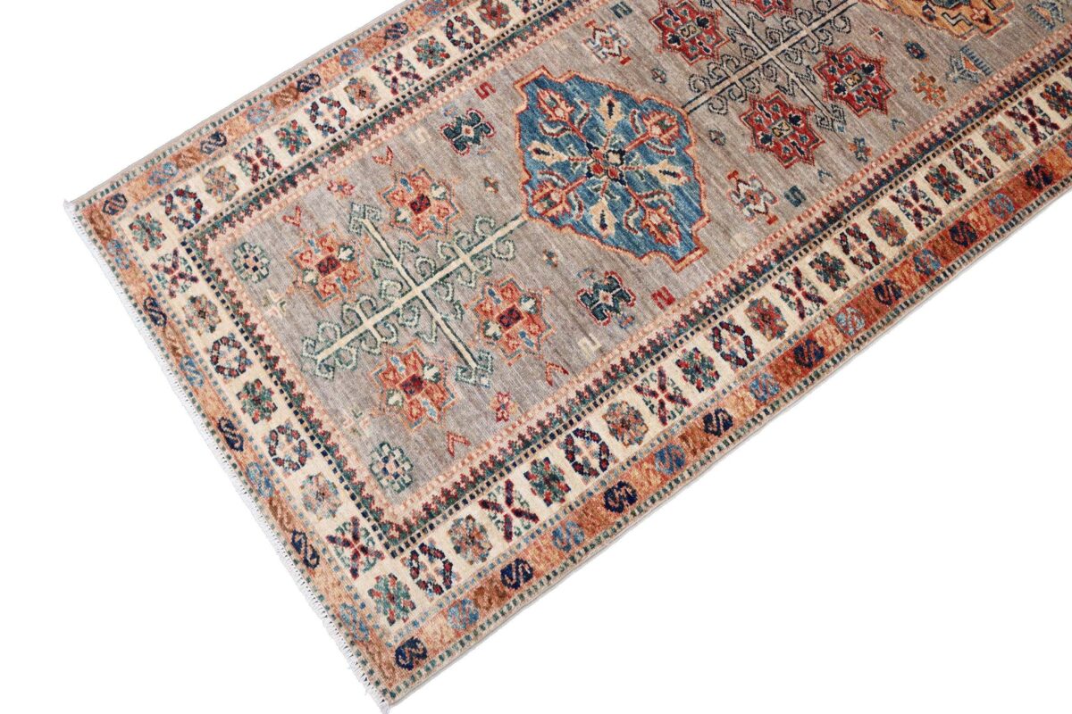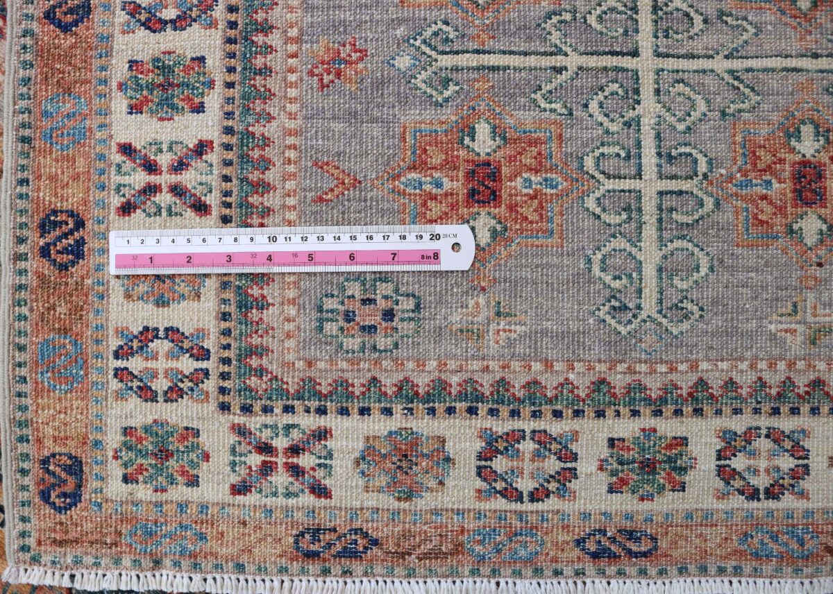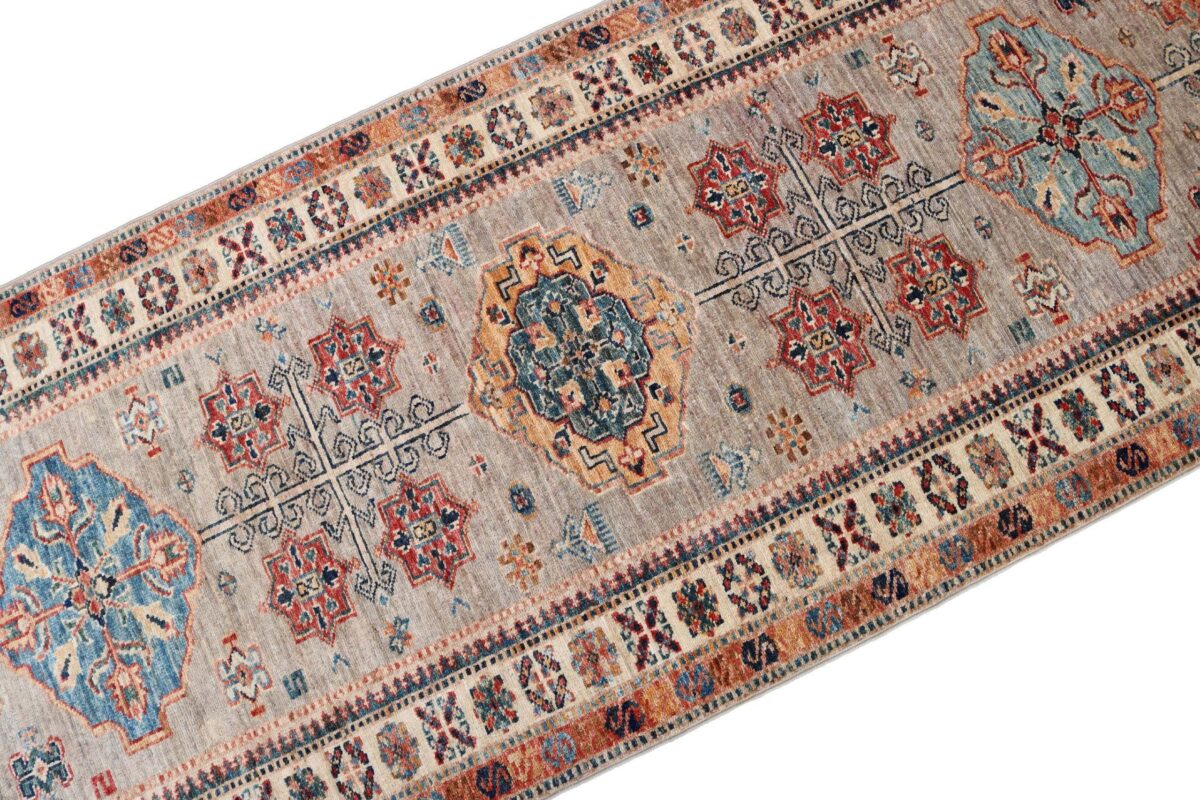 Mit ihren klaren, geometrischen Mustern sind kaukasische Teppiche eine ideale Ergänzung zu zeitgenössischen Einrichtungen und werden auch wegen ihrer Robustheit gerne nachgefragt. Wer sich für kaukasische Teppiche interessiert, kann selbstverständlich bei uns ausgewählte Exemplare online kaufen. Zu den geläufigsten kaukasischen Teppichen zählt der Kazak-Orientteppich, der hauptsächlich im Knüpfgebiet nördlich des Sewansees angefertigt wird. Das Kazak-Design weist die typischen kaukasischen Geometrieformen auf, manchmal mit zierlichen Details wie vereinfachten Tierdarstellungen. Ein Kazak-Orientteppich beeindruckt außerdem durch seine harmonische Farbgebung. So mancher Betrachter staunt über den gelungenen Einsatz von Türkis- und Grüntönen, der in dieser hochgradig-ästhetischen Form bei Orientteppichen selten ist. Beachtenswert sind ebenso die feinsinnig gestalteten Abschlüsse an den Teppichseiten eines Kazaks. Für den Flor wird reine Schurwolle mit türkischen Knoten auf Baumwollkette verarbeitet, wobei die durchschnittliche Knüpfung mit etwa 220.000 Knoten/m² als fein anzusehen ist. Online kaufen lassen sich außerdem sehr begehrte antike Kazak-Teppiche mit extra-feiner Knüpfung, die zur Gänze aus Schurwolle bestehen.