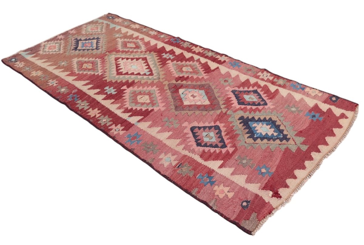 Kelim-Teppiche sind grundsätzlich flach gewebt und relativ leicht im Gewicht. Daher können sie auch effektvoll als Wanddekoration oder Bettüberwurf eingesetzt werden. Die charakteristische Kelim-Webtechnik mit Kette und farbigem Schussmaterial eignet sich hervorragend für zeitlose geometrische Muster und Abstraktionen aus Fauna und Flora. Auch bei modernen Kelim-Designs sind die Entwürfe häufig von traditioneller Symbolik inspiriert, wodurch der Kelim-Teppich seinen gefragten ethnischen Charme bewahrt.