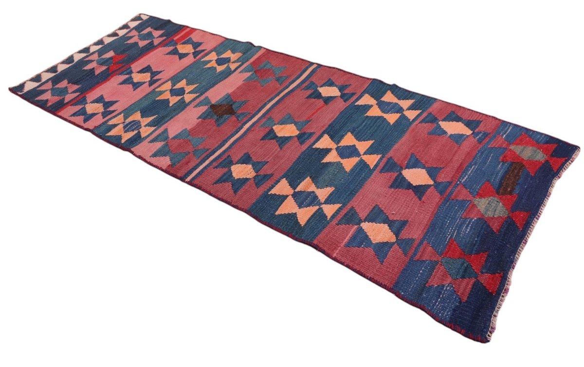 Kelim-Teppiche sind grundsätzlich flach gewebt und relativ leicht im Gewicht. Daher können sie auch effektvoll als Wanddekoration oder Bettüberwurf eingesetzt werden. Die charakteristische Kelim-Webtechnik mit Kette und farbigem Schussmaterial eignet sich hervorragend für zeitlose geometrische Muster und Abstraktionen aus Fauna und Flora. Auch bei modernen Kelim-Designs sind die Entwürfe häufig von traditioneller Symbolik inspiriert, wodurch der Kelim-Teppich seinen gefragten ethnischen Charme bewahrt.
