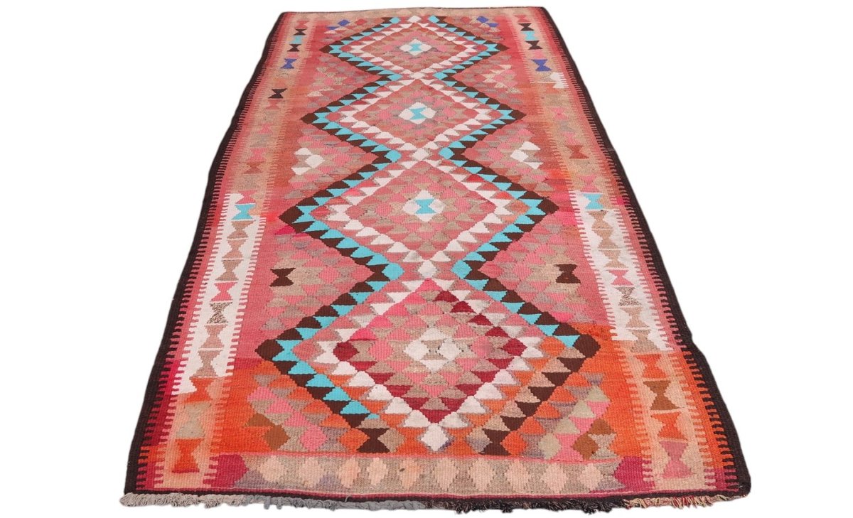 Kelim-Teppiche sind grundsätzlich flach gewebt und relativ leicht im Gewicht. Daher können sie auch effektvoll als Wanddekoration oder Bettüberwurf eingesetzt werden. Die charakteristische Kelim-Webtechnik mit Kette und farbigem Schussmaterial eignet sich hervorragend für zeitlose geometrische Muster und Abstraktionen aus Fauna und Flora. Auch bei modernen Kelim-Designs sind die Entwürfe häufig von traditioneller Symbolik inspiriert, wodurch der Kelim-Teppich seinen gefragten ethnischen Charme bewahrt.