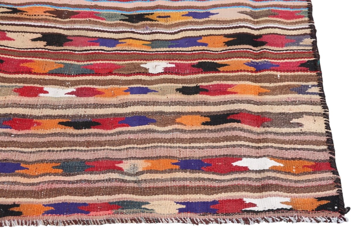 Kelim-Teppiche sind grundsätzlich flach gewebt und relativ leicht im Gewicht. Daher können sie auch effektvoll als Wanddekoration oder Bettüberwurf eingesetzt werden. Die charakteristische Kelim-Webtechnik mit Kette und farbigem Schussmaterial eignet sich hervorragend für zeitlose geometrische Muster und Abstraktionen aus Fauna und Flora. Auch bei modernen Kelim-Designs sind die Entwürfe häufig von traditioneller Symbolik inspiriert, wodurch der Kelim-Teppich seinen gefragten ethnischen Charme bewahrt.