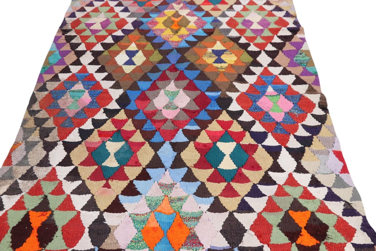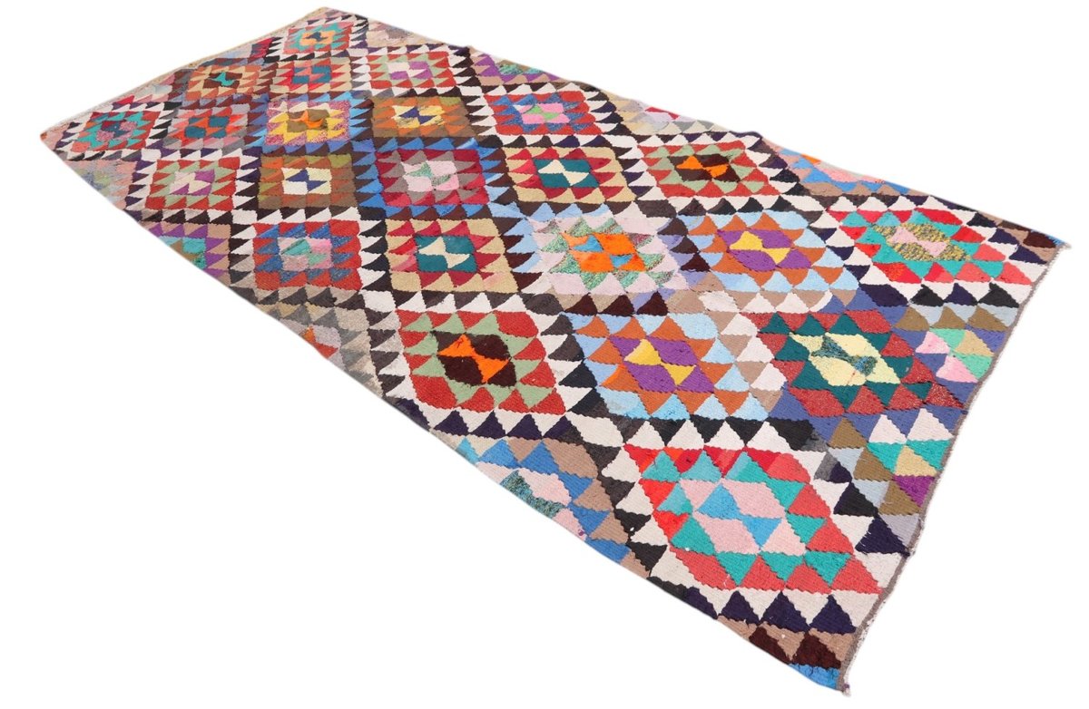 Kelim-Teppiche sind grundsätzlich flach gewebt und relativ leicht im Gewicht. Daher können sie auch effektvoll als Wanddekoration oder Bettüberwurf eingesetzt werden. Die charakteristische Kelim-Webtechnik mit Kette und farbigem Schussmaterial eignet sich hervorragend für zeitlose geometrische Muster und Abstraktionen aus Fauna und Flora. Auch bei modernen Kelim-Designs sind die Entwürfe häufig von traditioneller Symbolik inspiriert, wodurch der Kelim-Teppich seinen gefragten ethnischen Charme bewahrt.
