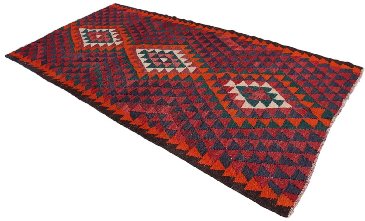 Kelim-Teppiche sind grundsätzlich flach gewebt und relativ leicht im Gewicht. Daher können sie auch effektvoll als Wanddekoration oder Bettüberwurf eingesetzt werden. Die charakteristische Kelim-Webtechnik mit Kette und farbigem Schussmaterial eignet sich hervorragend für zeitlose geometrische Muster und Abstraktionen aus Fauna und Flora. Auch bei modernen Kelim-Designs sind die Entwürfe häufig von traditioneller Symbolik inspiriert, wodurch der Kelim-Teppich seinen gefragten ethnischen Charme bewahrt.