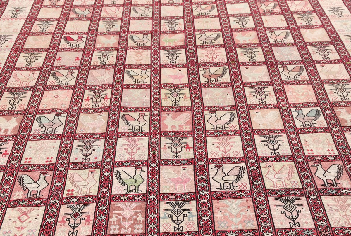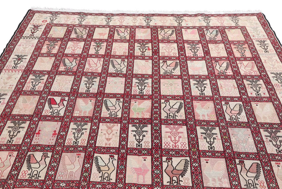 Kelim-Teppiche sind grundsätzlich flach gewebt und relativ leicht im Gewicht. Daher können sie auch effektvoll als Wanddekoration oder Bettüberwurf eingesetzt werden. Die charakteristische Kelim-Webtechnik mit Kette und farbigem Schussmaterial eignet sich hervorragend für zeitlose geometrische Muster und Abstraktionen aus Fauna und Flora. Auch bei modernen Kelim-Designs sind die Entwürfe häufig von traditioneller Symbolik inspiriert, wodurch der Kelim-Teppich seinen gefragten ethnischen Charme bewahrt.