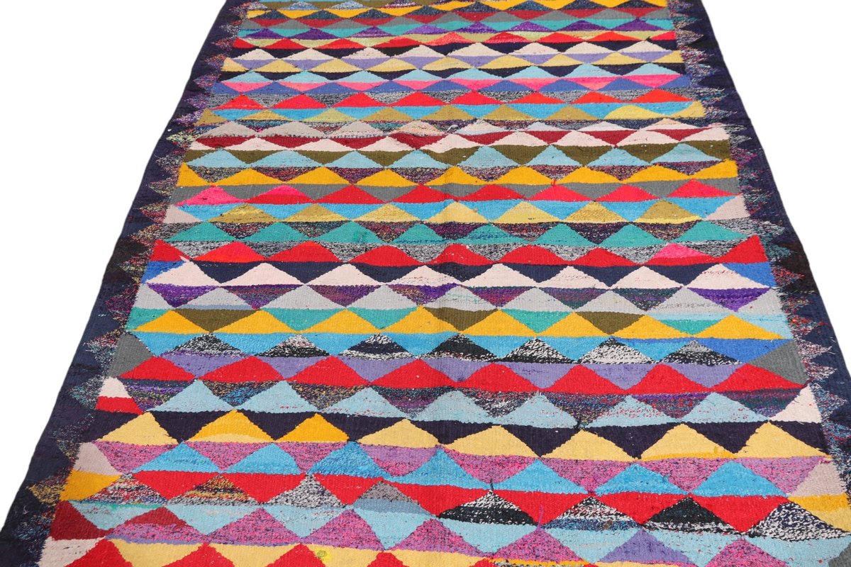 Kelim-Teppiche sind grundsätzlich flach gewebt und relativ leicht im Gewicht. Daher können sie auch effektvoll als Wanddekoration oder Bettüberwurf eingesetzt werden. Die charakteristische Kelim-Webtechnik mit Kette und farbigem Schussmaterial eignet sich hervorragend für zeitlose geometrische Muster und Abstraktionen aus Fauna und Flora. Auch bei modernen Kelim-Designs sind die Entwürfe häufig von traditioneller Symbolik inspiriert, wodurch der Kelim-Teppich seinen gefragten ethnischen Charme bewahrt.