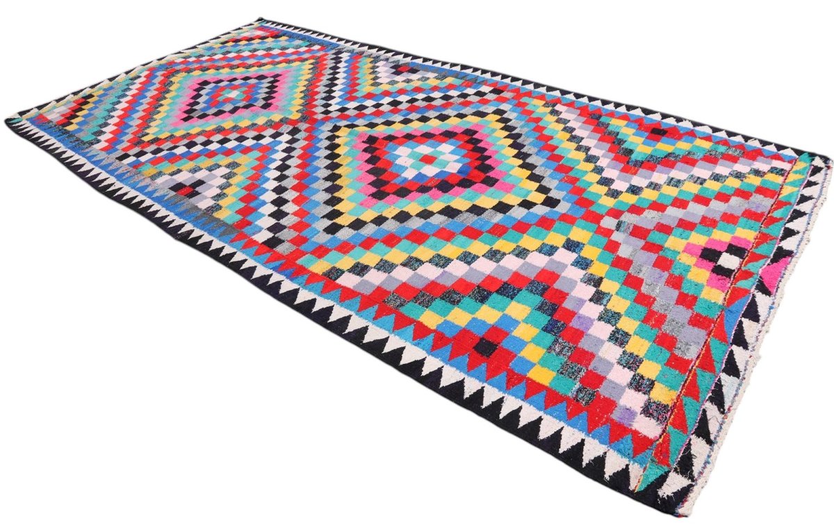 Kelim-Teppiche sind grundsätzlich flach gewebt und relativ leicht im Gewicht. Daher können sie auch effektvoll als Wanddekoration oder Bettüberwurf eingesetzt werden. Die charakteristische Kelim-Webtechnik mit Kette und farbigem Schussmaterial eignet sich hervorragend für zeitlose geometrische Muster und Abstraktionen aus Fauna und Flora. Auch bei modernen Kelim-Designs sind die Entwürfe häufig von traditioneller Symbolik inspiriert, wodurch der Kelim-Teppich seinen gefragten ethnischen Charme bewahrt.