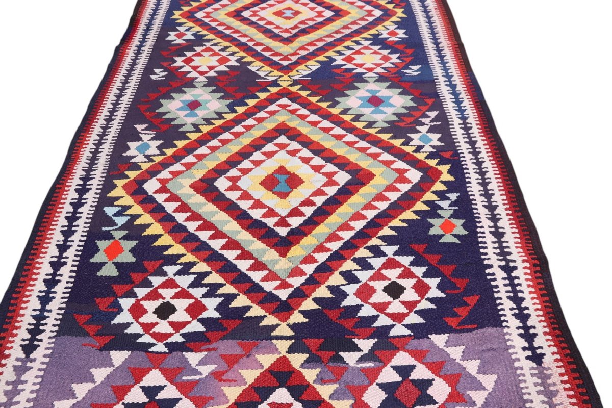 Kelim-Teppiche sind grundsätzlich flach gewebt und relativ leicht im Gewicht. Daher können sie auch effektvoll als Wanddekoration oder Bettüberwurf eingesetzt werden. Die charakteristische Kelim-Webtechnik mit Kette und farbigem Schussmaterial eignet sich hervorragend für zeitlose geometrische Muster und Abstraktionen aus Fauna und Flora. Auch bei modernen Kelim-Designs sind die Entwürfe häufig von traditioneller Symbolik inspiriert, wodurch der Kelim-Teppich seinen gefragten ethnischen Charme bewahrt.
