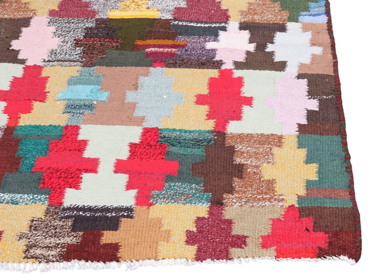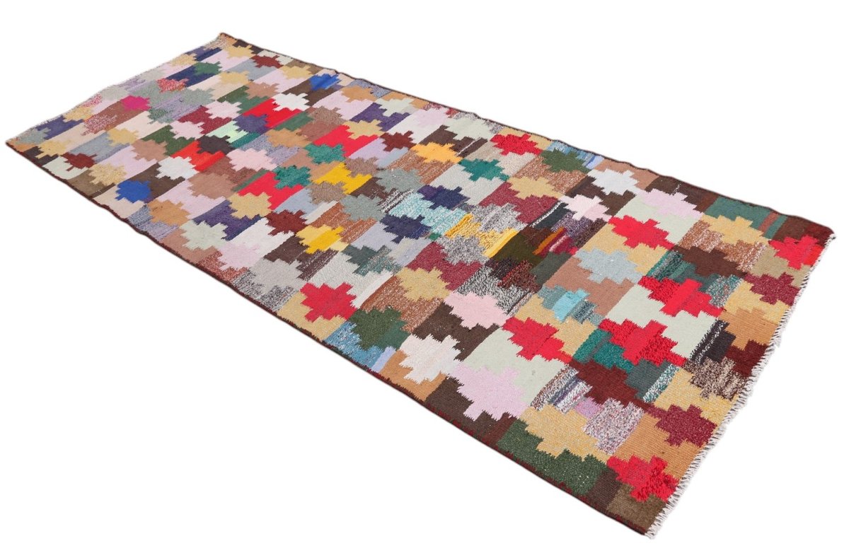 Kelim-Teppiche sind grundsätzlich flach gewebt und relativ leicht im Gewicht. Daher können sie auch effektvoll als Wanddekoration oder Bettüberwurf eingesetzt werden. Die charakteristische Kelim-Webtechnik mit Kette und farbigem Schussmaterial eignet sich hervorragend für zeitlose geometrische Muster und Abstraktionen aus Fauna und Flora. Auch bei modernen Kelim-Designs sind die Entwürfe häufig von traditioneller Symbolik inspiriert, wodurch der Kelim-Teppich seinen gefragten ethnischen Charme bewahrt.
