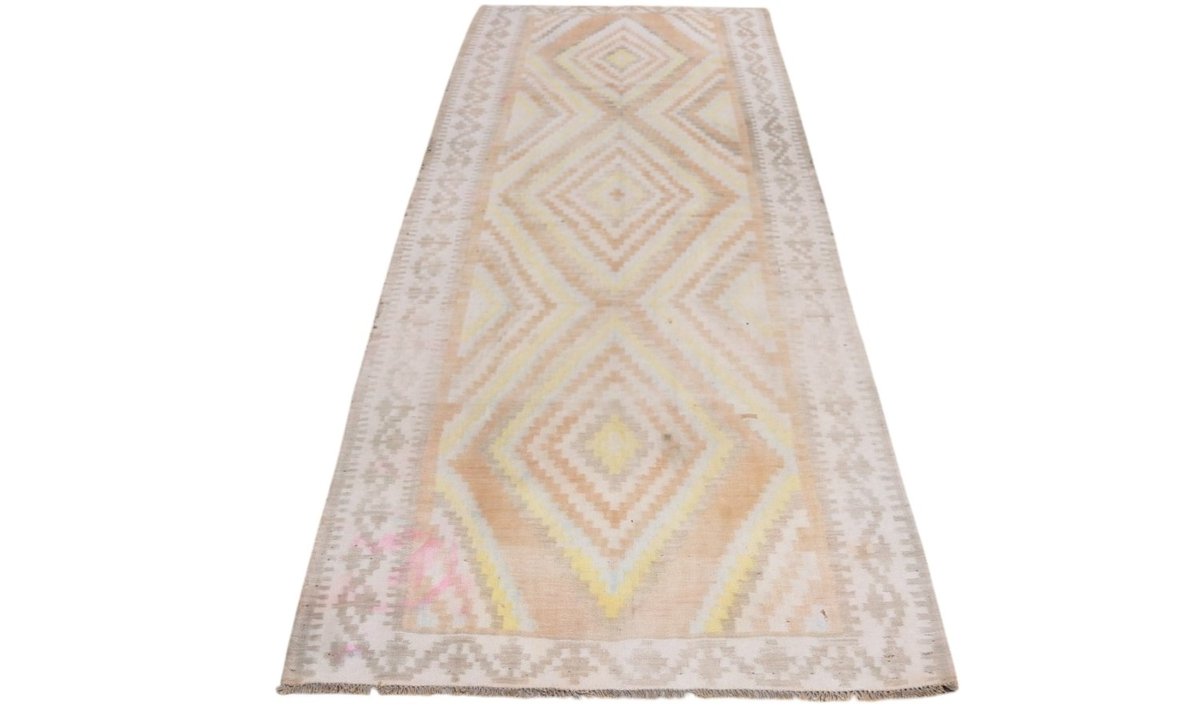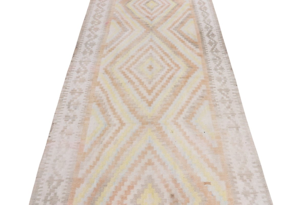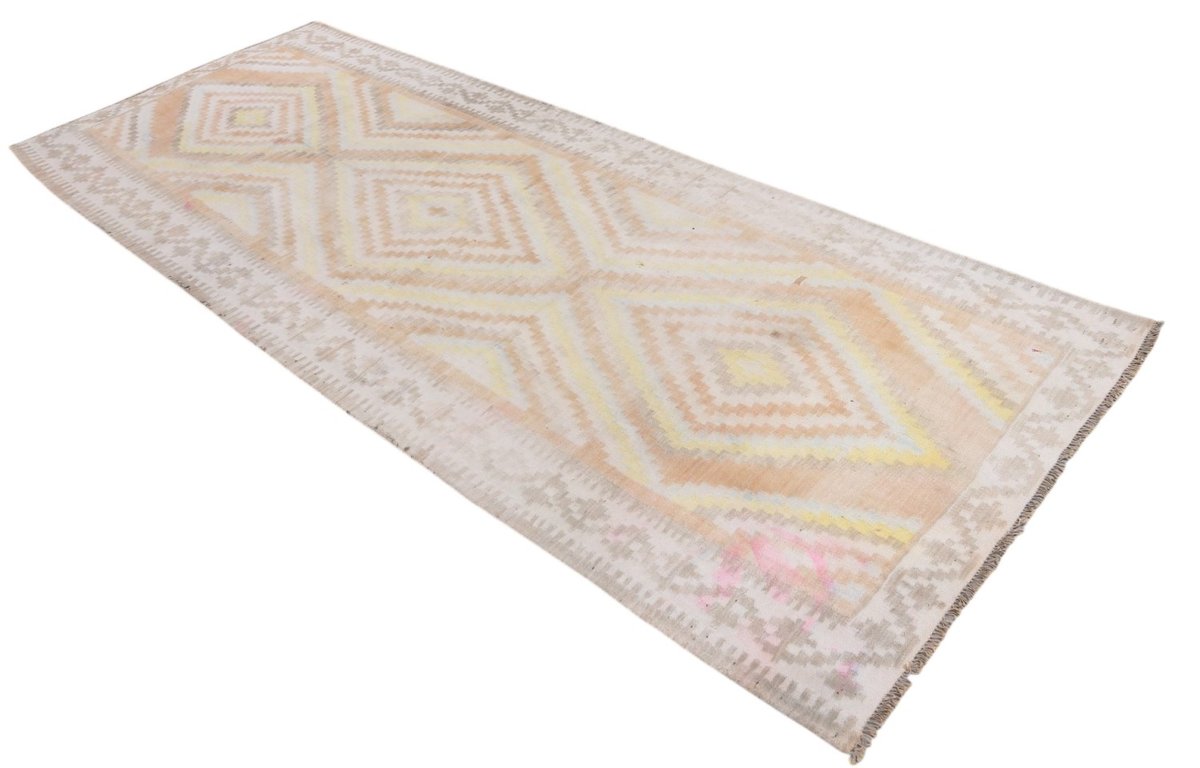 Kelim-Teppiche sind grundsätzlich flach gewebt und relativ leicht im Gewicht. Daher können sie auch effektvoll als Wanddekoration oder Bettüberwurf eingesetzt werden. Die charakteristische Kelim-Webtechnik mit Kette und farbigem Schussmaterial eignet sich hervorragend für zeitlose geometrische Muster und Abstraktionen aus Fauna und Flora. Auch bei modernen Kelim-Designs sind die Entwürfe häufig von traditioneller Symbolik inspiriert, wodurch der Kelim-Teppich seinen gefragten ethnischen Charme bewahrt.