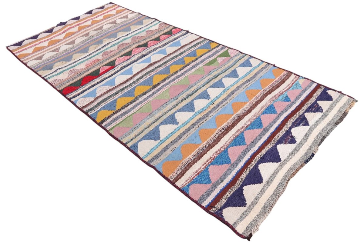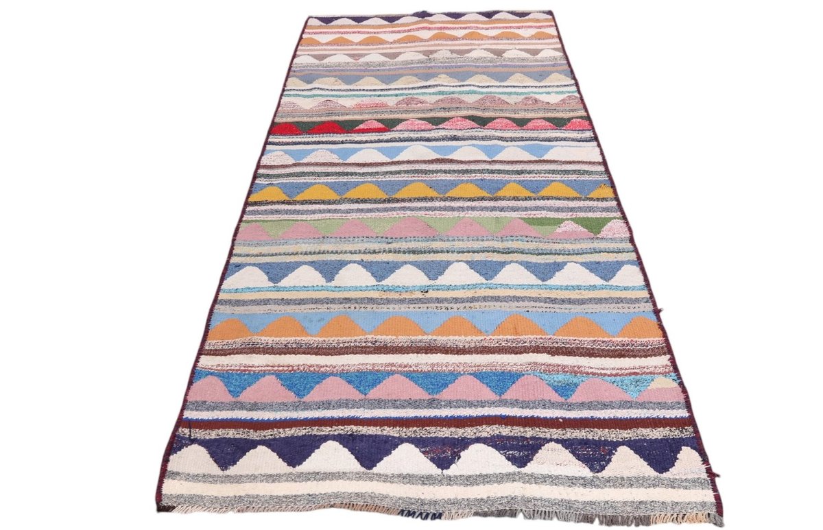 Kelim-Teppiche sind grundsätzlich flach gewebt und relativ leicht im Gewicht. Daher können sie auch effektvoll als Wanddekoration oder Bettüberwurf eingesetzt werden. Die charakteristische Kelim-Webtechnik mit Kette und farbigem Schussmaterial eignet sich hervorragend für zeitlose geometrische Muster und Abstraktionen aus Fauna und Flora. Auch bei modernen Kelim-Designs sind die Entwürfe häufig von traditioneller Symbolik inspiriert, wodurch der Kelim-Teppich seinen gefragten ethnischen Charme bewahrt.