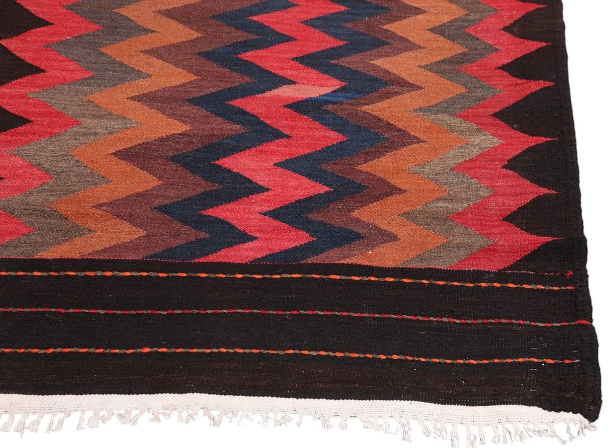 Kelim-Teppiche sind grundsätzlich flach gewebt und relativ leicht im Gewicht. Daher können sie auch effektvoll als Wanddekoration oder Bettüberwurf eingesetzt werden. Die charakteristische Kelim-Webtechnik mit Kette und farbigem Schussmaterial eignet sich hervorragend für zeitlose geometrische Muster und Abstraktionen aus Fauna und Flora. Auch bei modernen Kelim-Designs sind die Entwürfe häufig von traditioneller Symbolik inspiriert, wodurch der Kelim-Teppich seinen gefragten ethnischen Charme bewahrt.