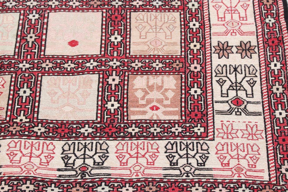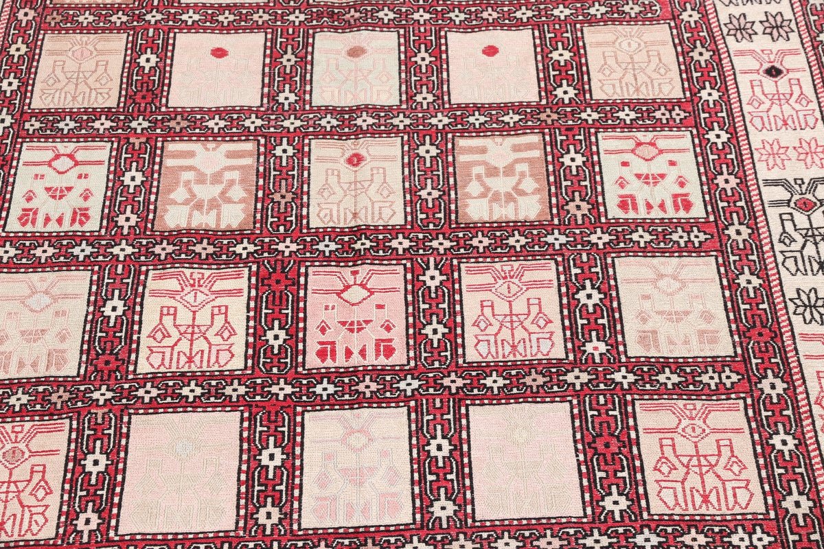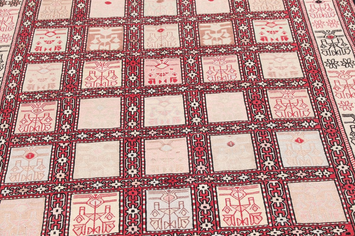 Kelim-Teppiche sind grundsätzlich flach gewebt und relativ leicht im Gewicht. Daher können sie auch effektvoll als Wanddekoration oder Bettüberwurf eingesetzt werden. Die charakteristische Kelim-Webtechnik mit Kette und farbigem Schussmaterial eignet sich hervorragend für zeitlose geometrische Muster und Abstraktionen aus Fauna und Flora. Auch bei modernen Kelim-Designs sind die Entwürfe häufig von traditioneller Symbolik inspiriert, wodurch der Kelim-Teppich seinen gefragten ethnischen Charme bewahrt.