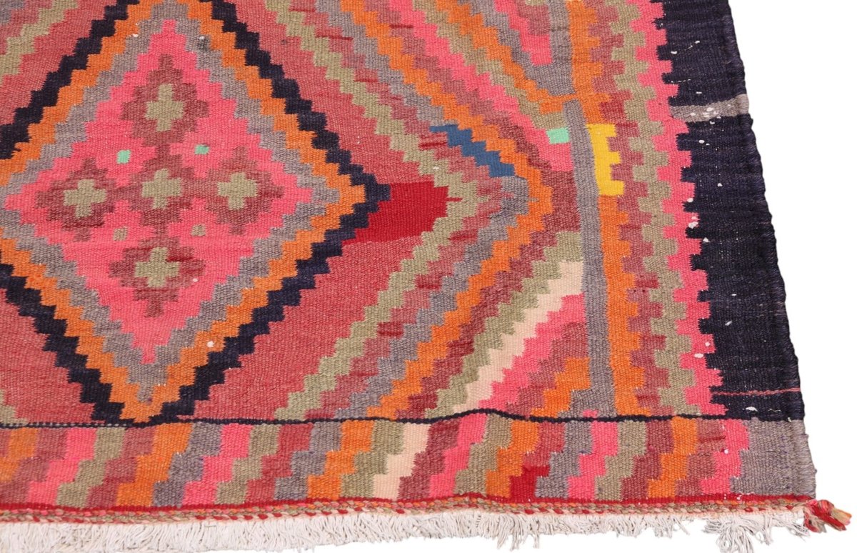 Kelim-Teppiche sind grundsätzlich flach gewebt und relativ leicht im Gewicht. Daher können sie auch effektvoll als Wanddekoration oder Bettüberwurf eingesetzt werden. Die charakteristische Kelim-Webtechnik mit Kette und farbigem Schussmaterial eignet sich hervorragend für zeitlose geometrische Muster und Abstraktionen aus Fauna und Flora. Auch bei modernen Kelim-Designs sind die Entwürfe häufig von traditioneller Symbolik inspiriert, wodurch der Kelim-Teppich seinen gefragten ethnischen Charme bewahrt.