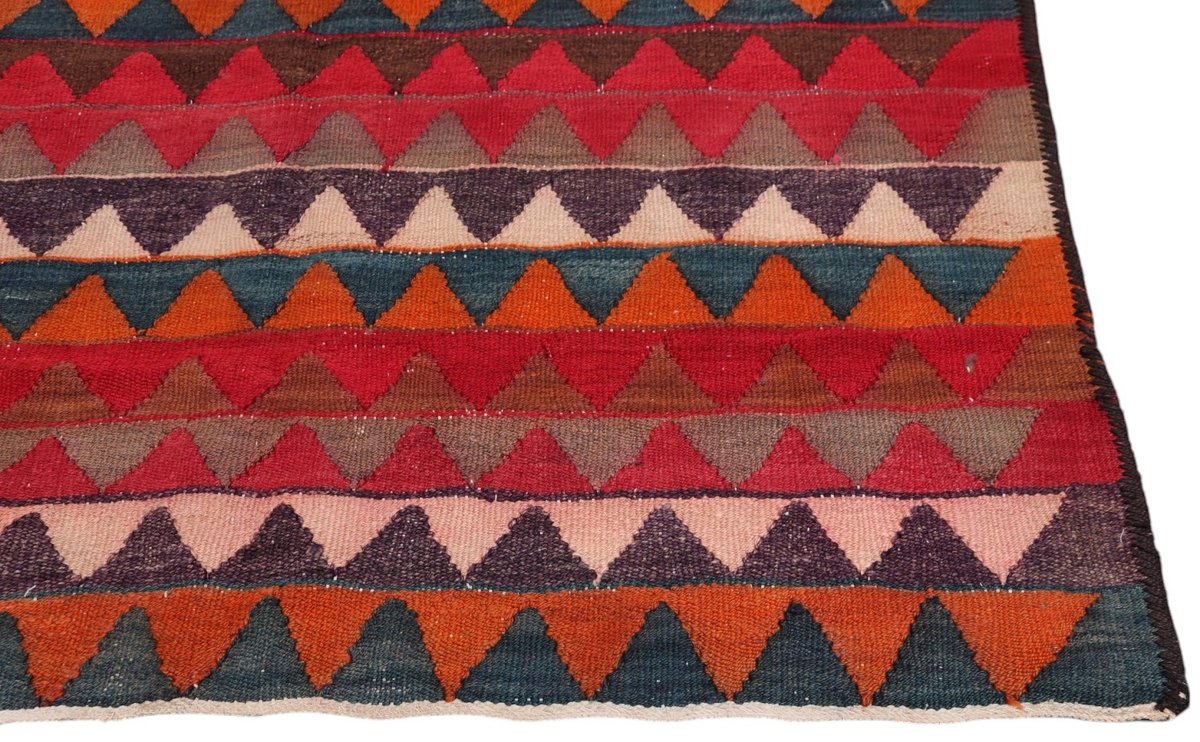 Kelim-Teppiche sind grundsätzlich flach gewebt und relativ leicht im Gewicht. Daher können sie auch effektvoll als Wanddekoration oder Bettüberwurf eingesetzt werden. Die charakteristische Kelim-Webtechnik mit Kette und farbigem Schussmaterial eignet sich hervorragend für zeitlose geometrische Muster und Abstraktionen aus Fauna und Flora. Auch bei modernen Kelim-Designs sind die Entwürfe häufig von traditioneller Symbolik inspiriert, wodurch der Kelim-Teppich seinen gefragten ethnischen Charme bewahrt.