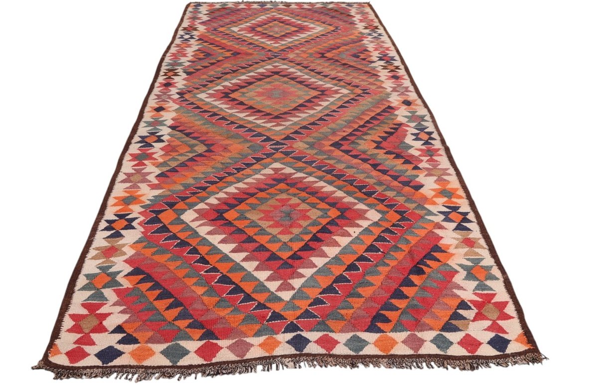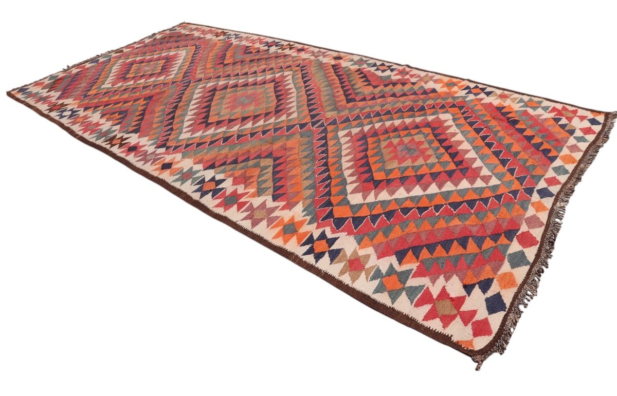 Kelim-Teppiche sind grundsätzlich flach gewebt und relativ leicht im Gewicht. Daher können sie auch effektvoll als Wanddekoration oder Bettüberwurf eingesetzt werden. Die charakteristische Kelim-Webtechnik mit Kette und farbigem Schussmaterial eignet sich hervorragend für zeitlose geometrische Muster und Abstraktionen aus Fauna und Flora. Auch bei modernen Kelim-Designs sind die Entwürfe häufig von traditioneller Symbolik inspiriert, wodurch der Kelim-Teppich seinen gefragten ethnischen Charme bewahrt.