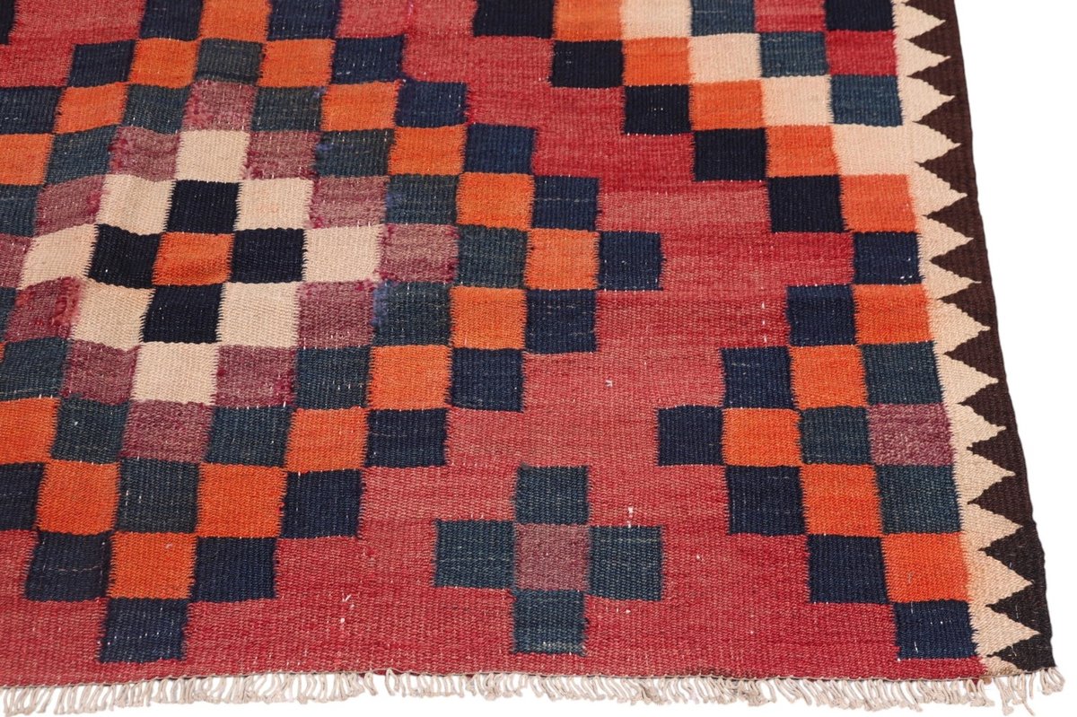 Kelim-Teppiche sind grundsätzlich flach gewebt und relativ leicht im Gewicht. Daher können sie auch effektvoll als Wanddekoration oder Bettüberwurf eingesetzt werden. Die charakteristische Kelim-Webtechnik mit Kette und farbigem Schussmaterial eignet sich hervorragend für zeitlose geometrische Muster und Abstraktionen aus Fauna und Flora. Auch bei modernen Kelim-Designs sind die Entwürfe häufig von traditioneller Symbolik inspiriert, wodurch der Kelim-Teppich seinen gefragten ethnischen Charme bewahrt.