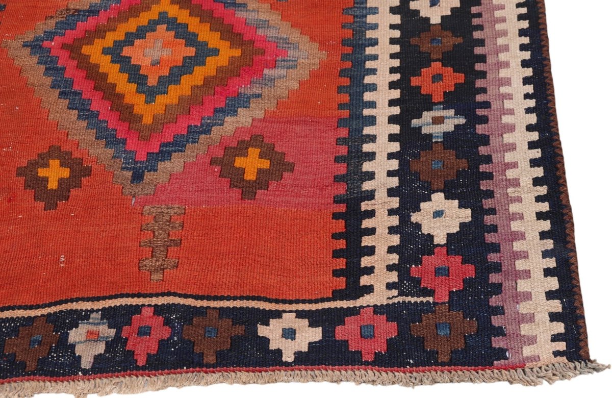 Kelim-Teppiche sind grundsätzlich flach gewebt und relativ leicht im Gewicht. Daher können sie auch effektvoll als Wanddekoration oder Bettüberwurf eingesetzt werden. Die charakteristische Kelim-Webtechnik mit Kette und farbigem Schussmaterial eignet sich hervorragend für zeitlose geometrische Muster und Abstraktionen aus Fauna und Flora. Auch bei modernen Kelim-Designs sind die Entwürfe häufig von traditioneller Symbolik inspiriert, wodurch der Kelim-Teppich seinen gefragten ethnischen Charme bewahrt.