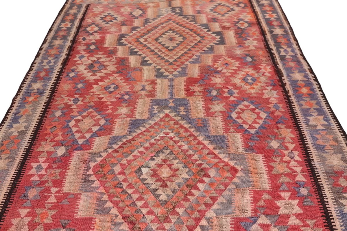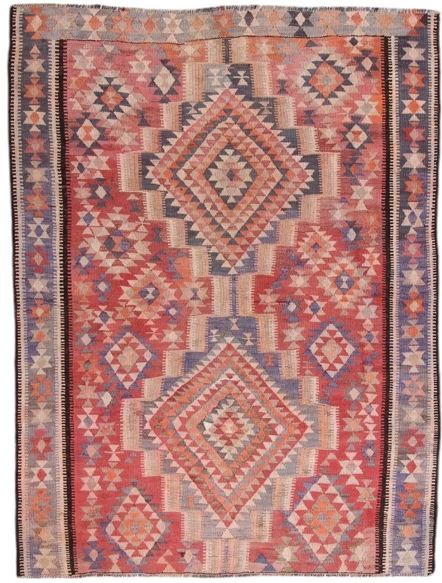 Kelim-Teppiche sind grundsätzlich flach gewebt und relativ leicht im Gewicht. Daher können sie auch effektvoll als Wanddekoration oder Bettüberwurf eingesetzt werden. Die charakteristische Kelim-Webtechnik mit Kette und farbigem Schussmaterial eignet sich hervorragend für zeitlose geometrische Muster und Abstraktionen aus Fauna und Flora. Auch bei modernen Kelim-Designs sind die Entwürfe häufig von traditioneller Symbolik inspiriert, wodurch der Kelim-Teppich seinen gefragten ethnischen Charme bewahrt.