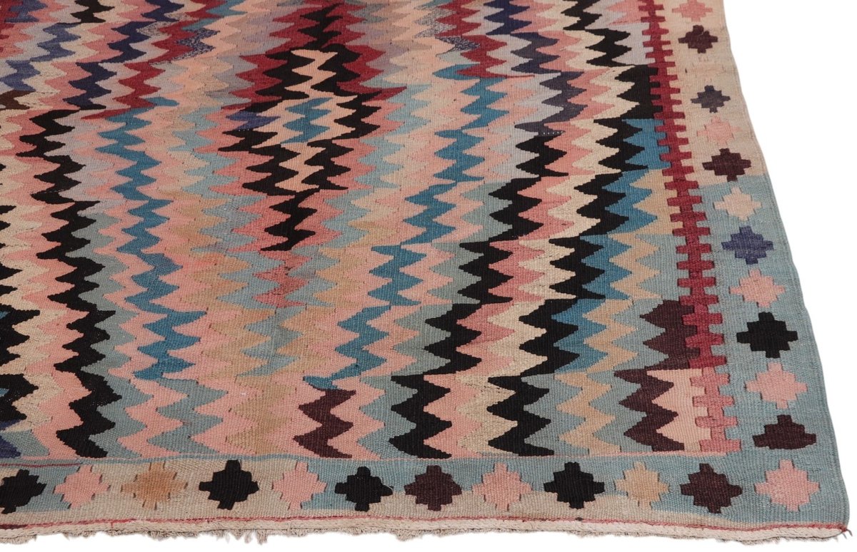 Kelim-Teppiche sind grundsätzlich flach gewebt und relativ leicht im Gewicht. Daher können sie auch effektvoll als Wanddekoration oder Bettüberwurf eingesetzt werden. Die charakteristische Kelim-Webtechnik mit Kette und farbigem Schussmaterial eignet sich hervorragend für zeitlose geometrische Muster und Abstraktionen aus Fauna und Flora. Auch bei modernen Kelim-Designs sind die Entwürfe häufig von traditioneller Symbolik inspiriert, wodurch der Kelim-Teppich seinen gefragten ethnischen Charme bewahrt.