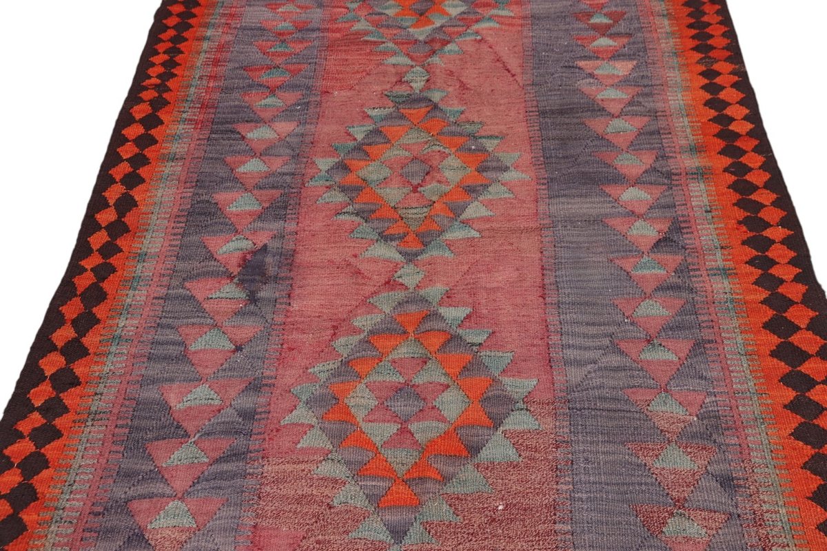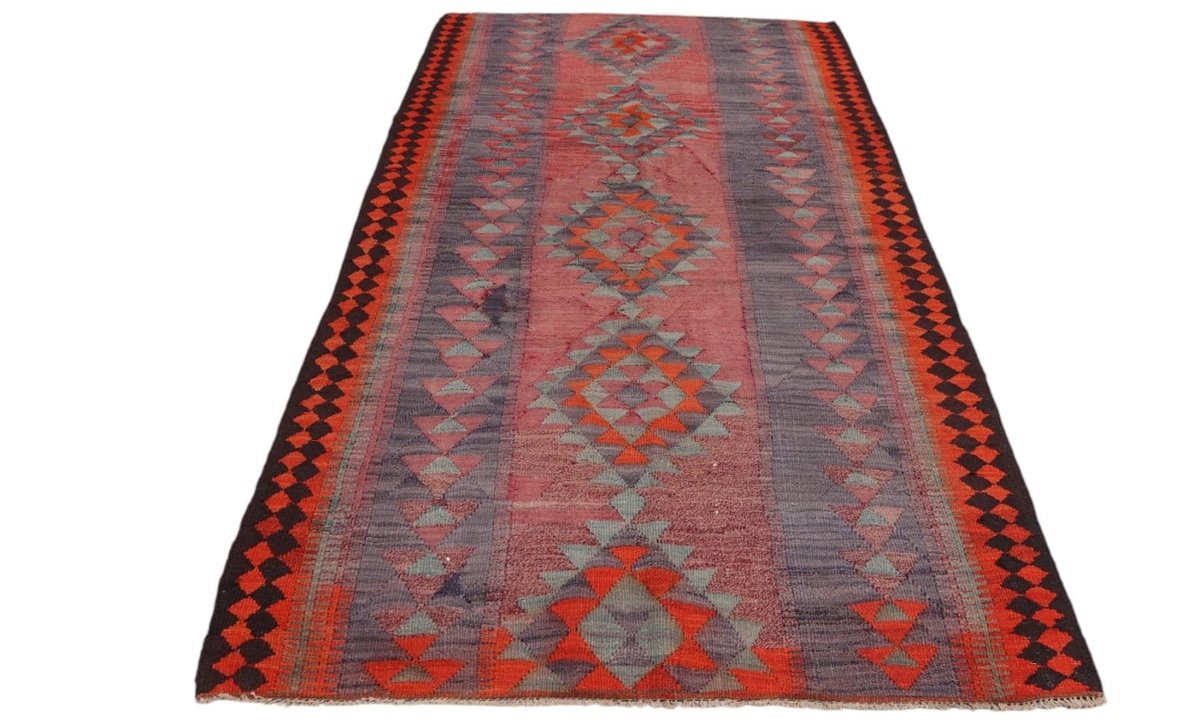 Kelim-Teppiche sind grundsätzlich flach gewebt und relativ leicht im Gewicht. Daher können sie auch effektvoll als Wanddekoration oder Bettüberwurf eingesetzt werden. Die charakteristische Kelim-Webtechnik mit Kette und farbigem Schussmaterial eignet sich hervorragend für zeitlose geometrische Muster und Abstraktionen aus Fauna und Flora. Auch bei modernen Kelim-Designs sind die Entwürfe häufig von traditioneller Symbolik inspiriert, wodurch der Kelim-Teppich seinen gefragten ethnischen Charme bewahrt.