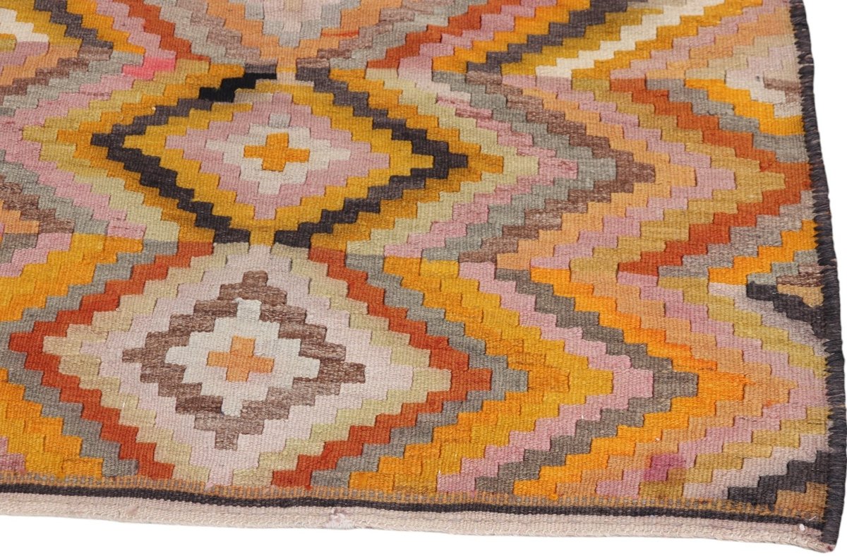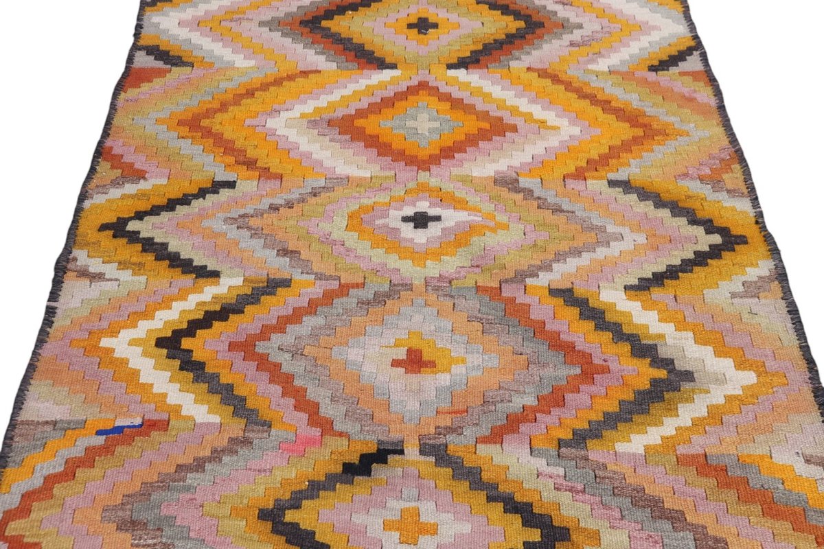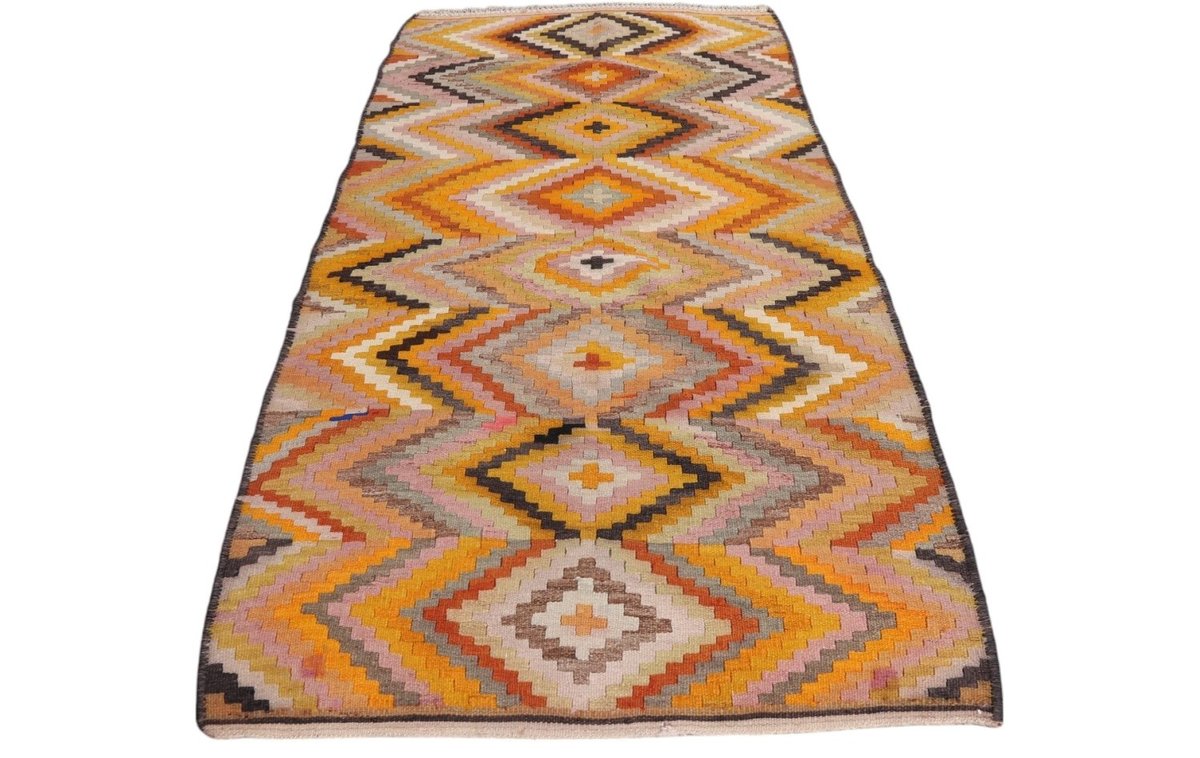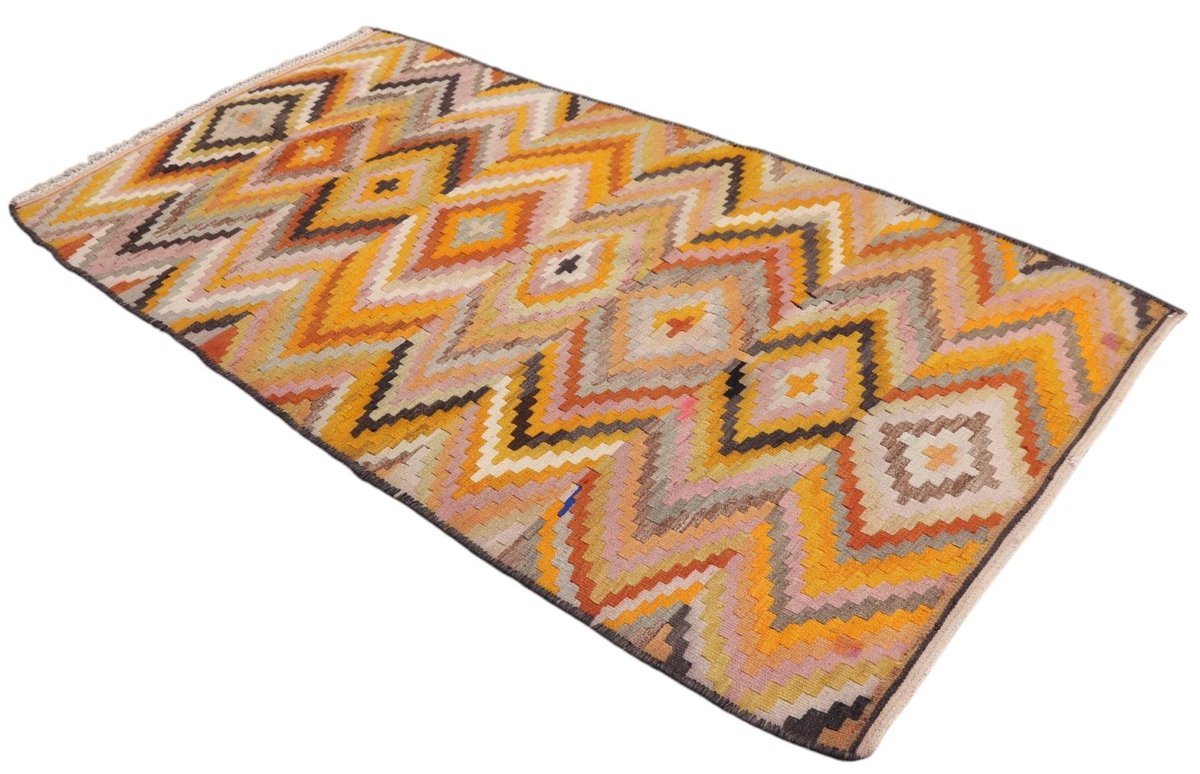 Kelim-Teppiche sind grundsätzlich flach gewebt und relativ leicht im Gewicht. Daher können sie auch effektvoll als Wanddekoration oder Bettüberwurf eingesetzt werden. Die charakteristische Kelim-Webtechnik mit Kette und farbigem Schussmaterial eignet sich hervorragend für zeitlose geometrische Muster und Abstraktionen aus Fauna und Flora. Auch bei modernen Kelim-Designs sind die Entwürfe häufig von traditioneller Symbolik inspiriert, wodurch der Kelim-Teppich seinen gefragten ethnischen Charme bewahrt.