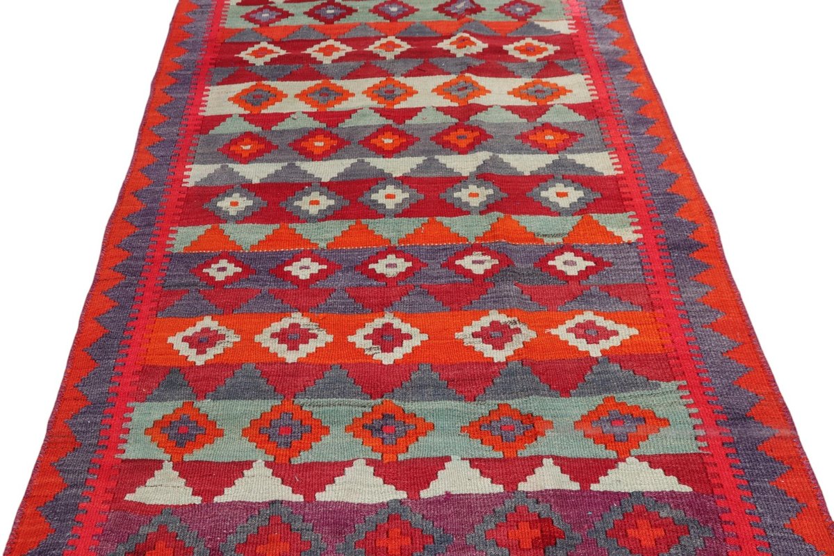 Kelim-Teppiche sind grundsätzlich flach gewebt und relativ leicht im Gewicht. Daher können sie auch effektvoll als Wanddekoration oder Bettüberwurf eingesetzt werden. Die charakteristische Kelim-Webtechnik mit Kette und farbigem Schussmaterial eignet sich hervorragend für zeitlose geometrische Muster und Abstraktionen aus Fauna und Flora. Auch bei modernen Kelim-Designs sind die Entwürfe häufig von traditioneller Symbolik inspiriert, wodurch der Kelim-Teppich seinen gefragten ethnischen Charme bewahrt.