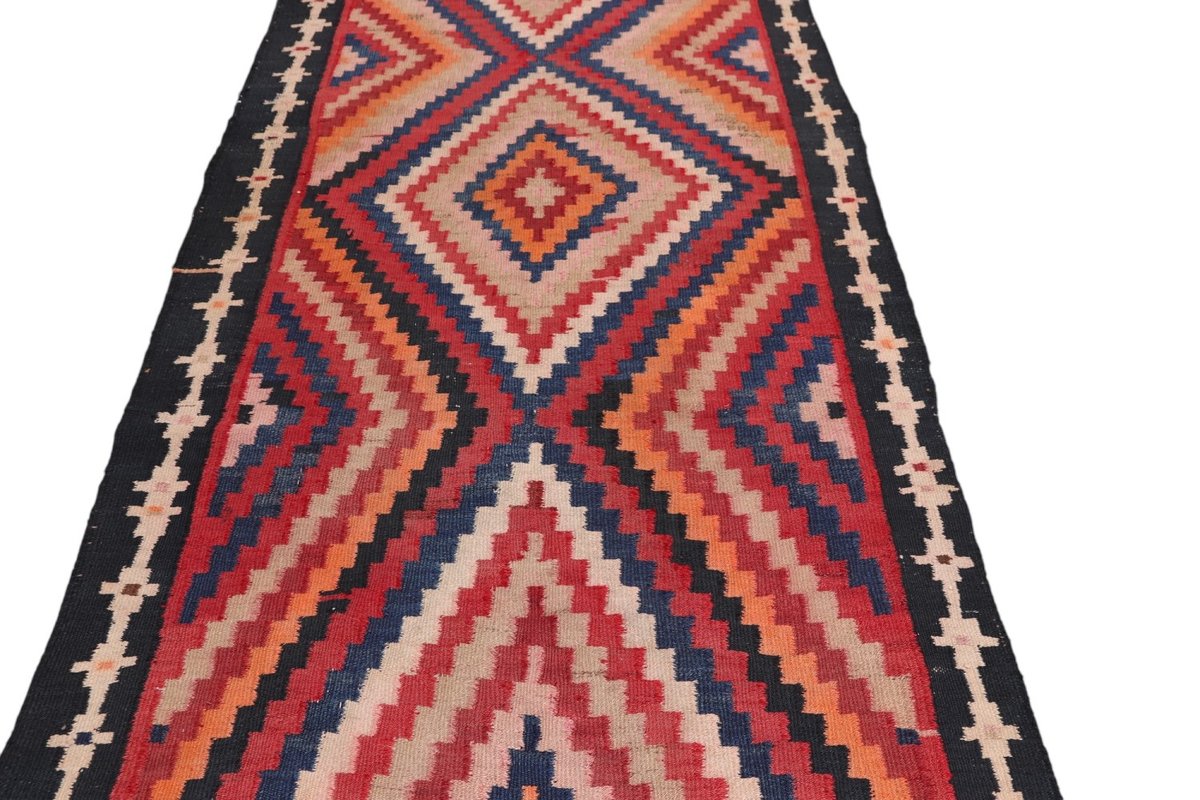 Kelim-Teppiche sind grundsätzlich flach gewebt und relativ leicht im Gewicht. Daher können sie auch effektvoll als Wanddekoration oder Bettüberwurf eingesetzt werden. Die charakteristische Kelim-Webtechnik mit Kette und farbigem Schussmaterial eignet sich hervorragend für zeitlose geometrische Muster und Abstraktionen aus Fauna und Flora. Auch bei modernen Kelim-Designs sind die Entwürfe häufig von traditioneller Symbolik inspiriert, wodurch der Kelim-Teppich seinen gefragten ethnischen Charme bewahrt.