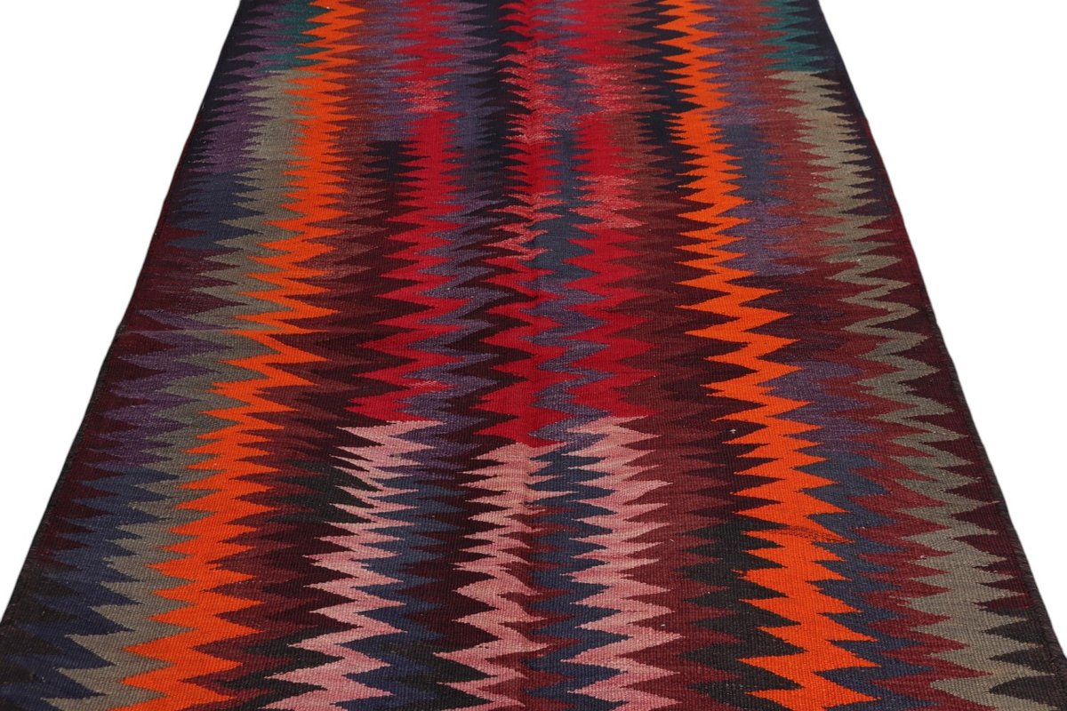 Kelim-Teppiche sind grundsätzlich flach gewebt und relativ leicht im Gewicht. Daher können sie auch effektvoll als Wanddekoration oder Bettüberwurf eingesetzt werden. Die charakteristische Kelim-Webtechnik mit Kette und farbigem Schussmaterial eignet sich hervorragend für zeitlose geometrische Muster und Abstraktionen aus Fauna und Flora. Auch bei modernen Kelim-Designs sind die Entwürfe häufig von traditioneller Symbolik inspiriert, wodurch der Kelim-Teppich seinen gefragten ethnischen Charme bewahrt.