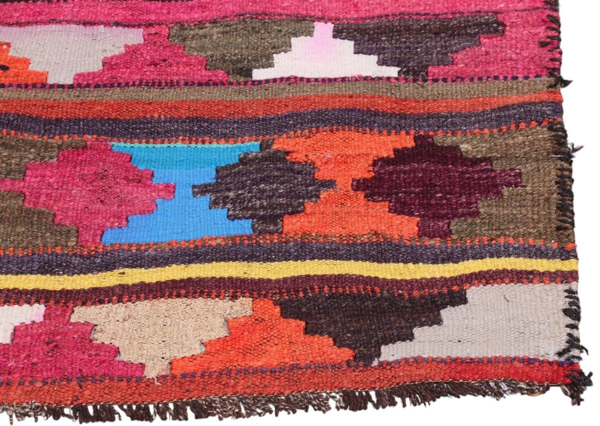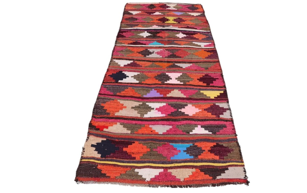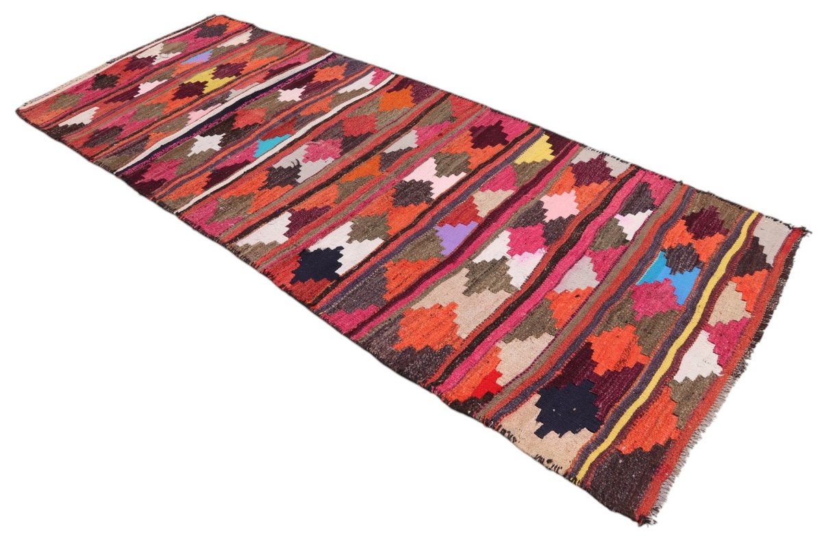 Kelim-Teppiche sind grundsätzlich flach gewebt und relativ leicht im Gewicht. Daher können sie auch effektvoll als Wanddekoration oder Bettüberwurf eingesetzt werden. Die charakteristische Kelim-Webtechnik mit Kette und farbigem Schussmaterial eignet sich hervorragend für zeitlose geometrische Muster und Abstraktionen aus Fauna und Flora. Auch bei modernen Kelim-Designs sind die Entwürfe häufig von traditioneller Symbolik inspiriert, wodurch der Kelim-Teppich seinen gefragten ethnischen Charme bewahrt.