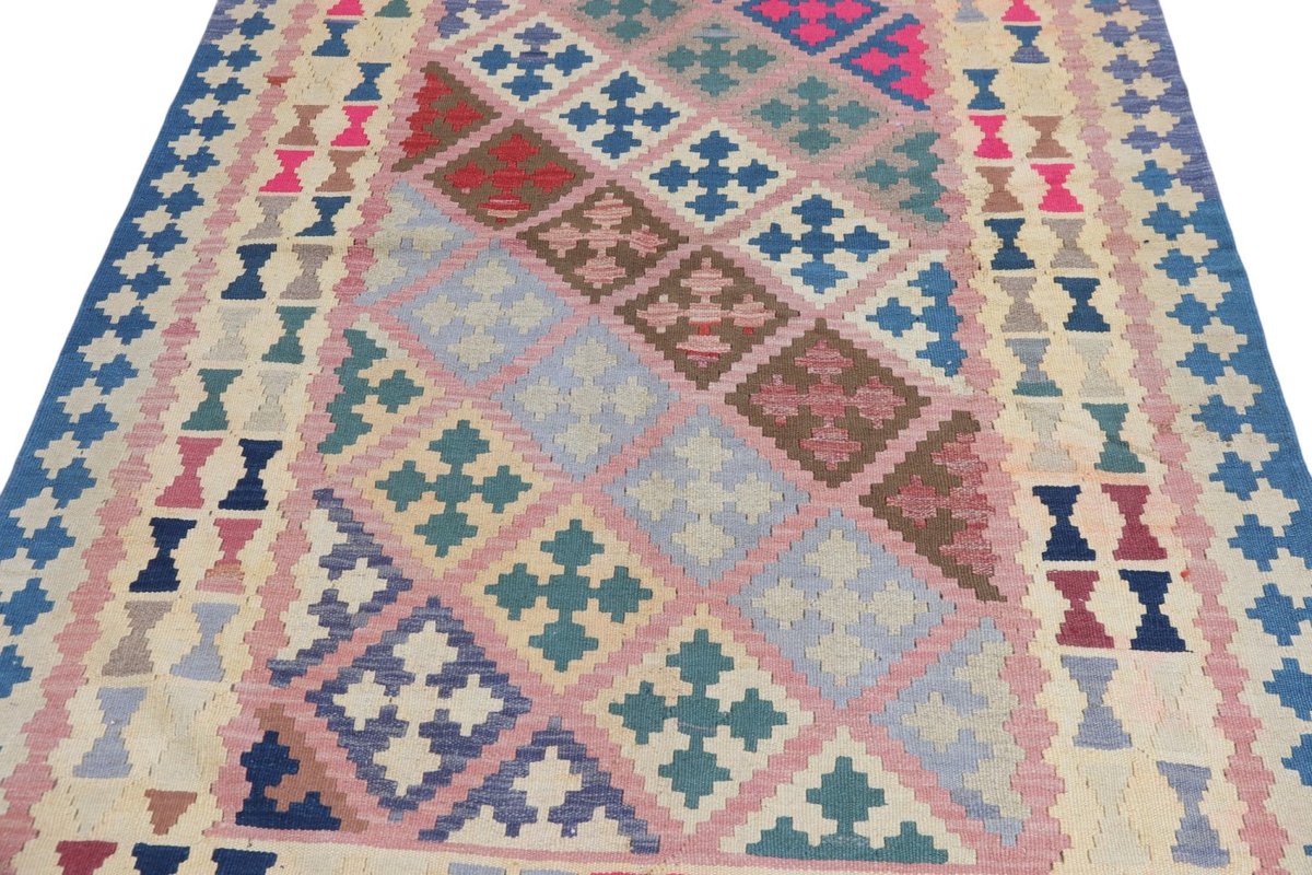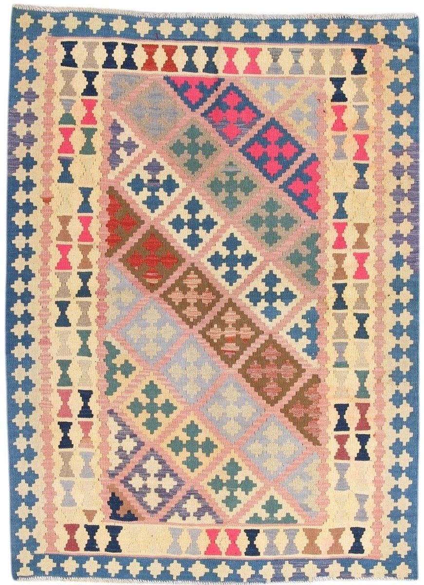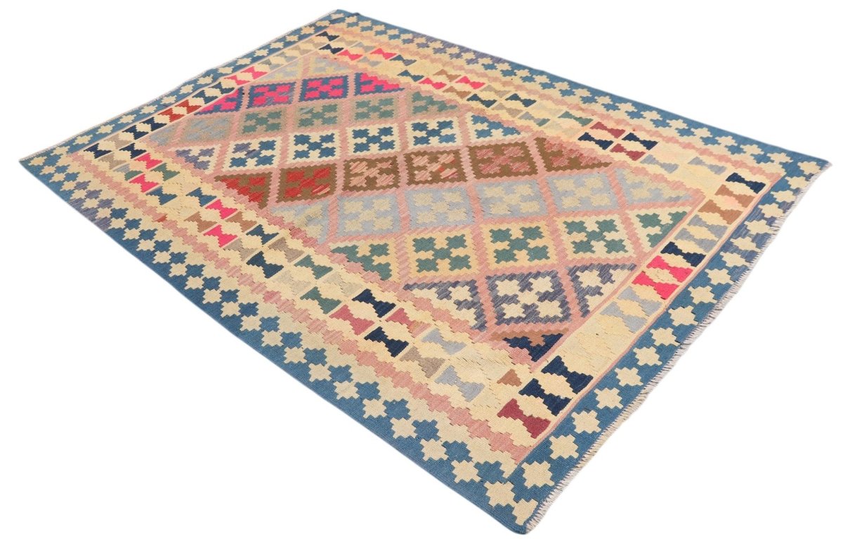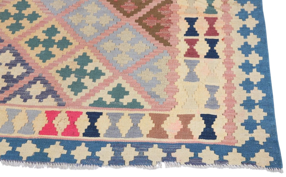Kelim-Teppiche sind grundsätzlich flach gewebt und relativ leicht im Gewicht. Daher können sie auch effektvoll als Wanddekoration oder Bettüberwurf eingesetzt werden. Die charakteristische Kelim-Webtechnik mit Kette und farbigem Schussmaterial eignet sich hervorragend für zeitlose geometrische Muster und Abstraktionen aus Fauna und Flora. Auch bei modernen Kelim-Designs sind die Entwürfe häufig von traditioneller Symbolik inspiriert, wodurch der Kelim-Teppich seinen gefragten ethnischen Charme bewahrt.