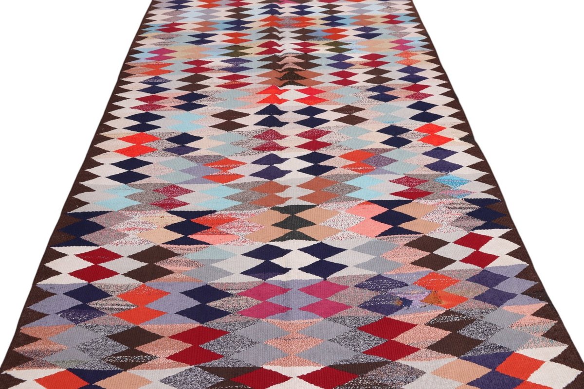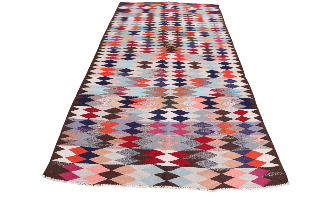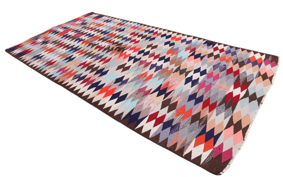 Kelim-Teppiche sind grundsätzlich flach gewebt und relativ leicht im Gewicht. Daher können sie auch effektvoll als Wanddekoration oder Bettüberwurf eingesetzt werden. Die charakteristische Kelim-Webtechnik mit Kette und farbigem Schussmaterial eignet sich hervorragend für zeitlose geometrische Muster und Abstraktionen aus Fauna und Flora. Auch bei modernen Kelim-Designs sind die Entwürfe häufig von traditioneller Symbolik inspiriert, wodurch der Kelim-Teppich seinen gefragten ethnischen Charme bewahrt.