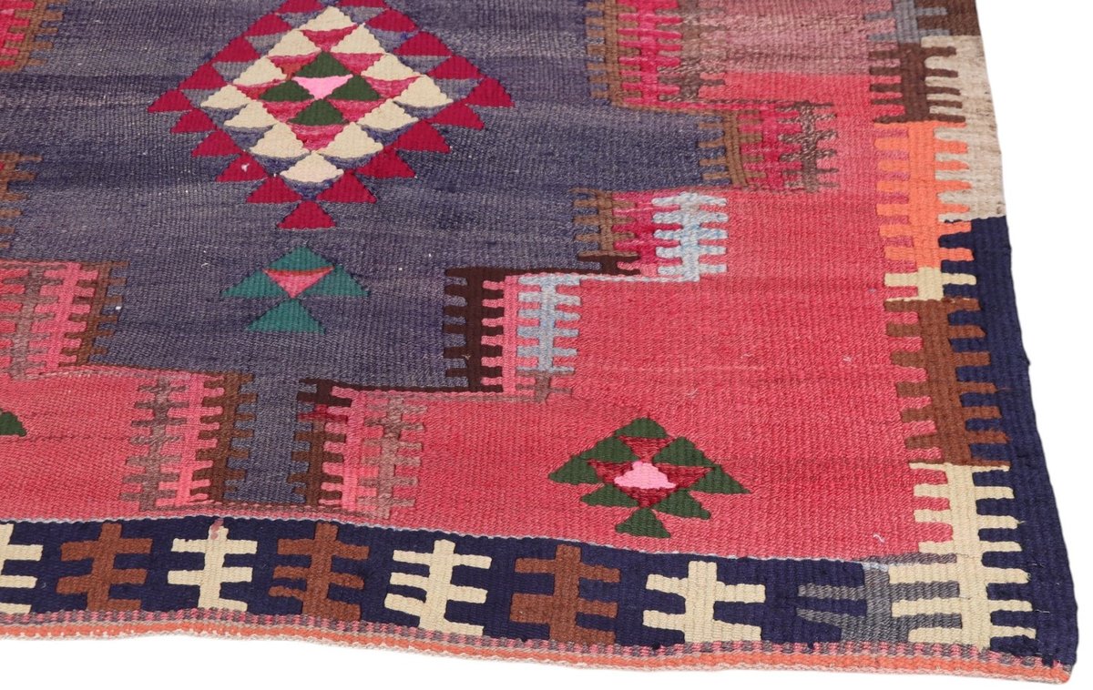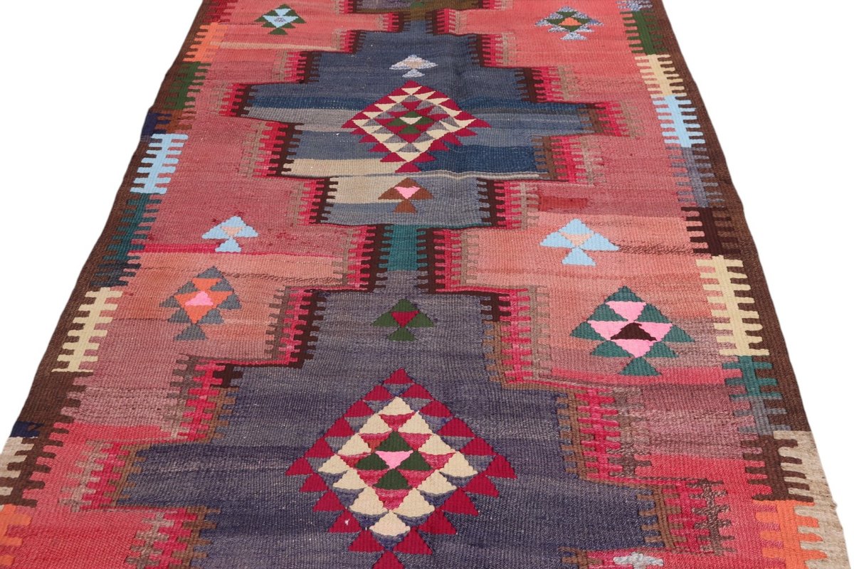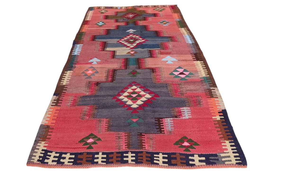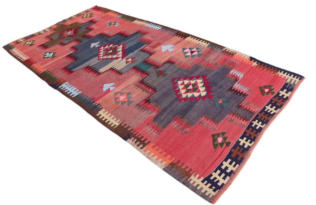 Kelim-Teppiche sind grundsätzlich flach gewebt und relativ leicht im Gewicht. Daher können sie auch effektvoll als Wanddekoration oder Bettüberwurf eingesetzt werden. Die charakteristische Kelim-Webtechnik mit Kette und farbigem Schussmaterial eignet sich hervorragend für zeitlose geometrische Muster und Abstraktionen aus Fauna und Flora. Auch bei modernen Kelim-Designs sind die Entwürfe häufig von traditioneller Symbolik inspiriert, wodurch der Kelim-Teppich seinen gefragten ethnischen Charme bewahrt.