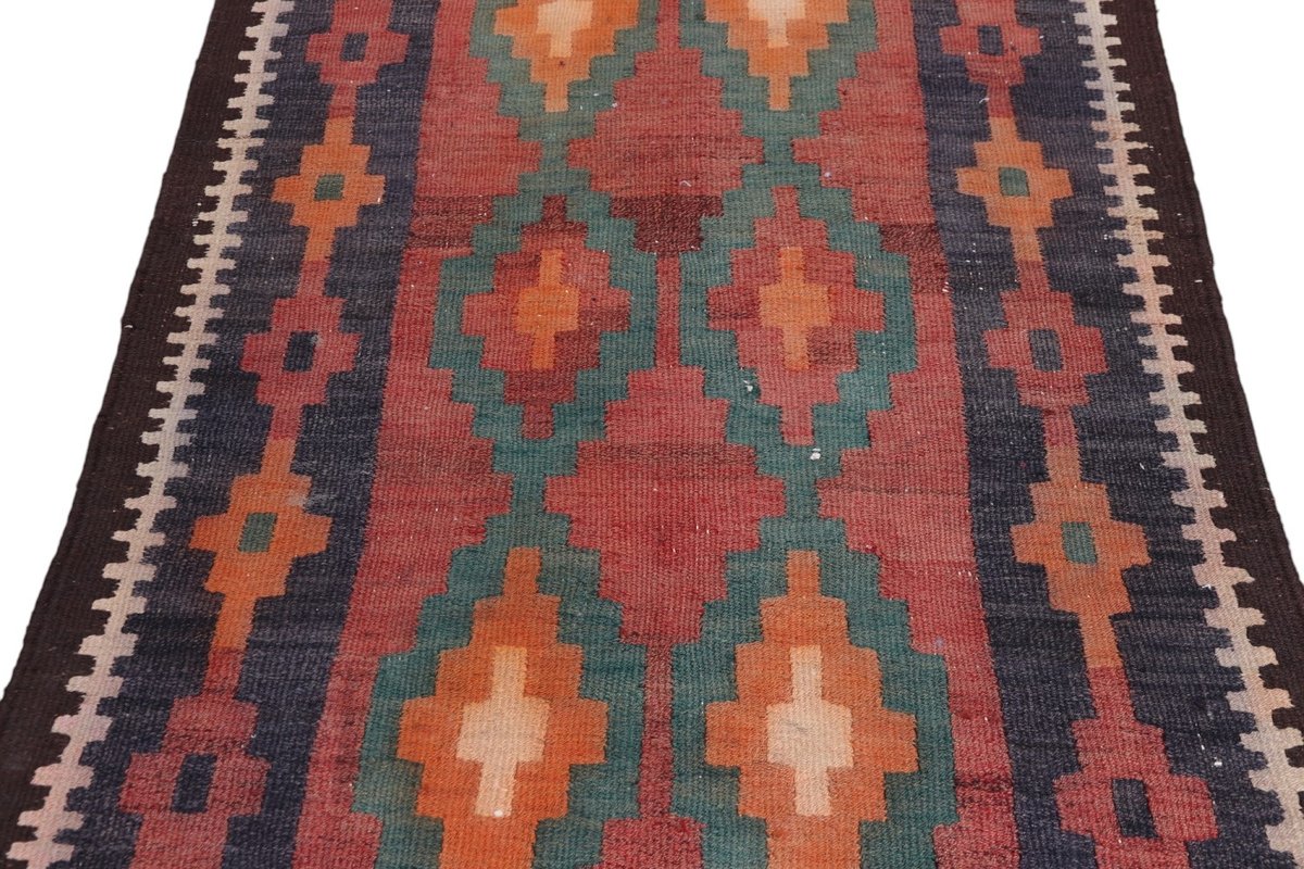 Kelim-Teppiche sind grundsätzlich flach gewebt und relativ leicht im Gewicht. Daher können sie auch effektvoll als Wanddekoration oder Bettüberwurf eingesetzt werden. Die charakteristische Kelim-Webtechnik mit Kette und farbigem Schussmaterial eignet sich hervorragend für zeitlose geometrische Muster und Abstraktionen aus Fauna und Flora. Auch bei modernen Kelim-Designs sind die Entwürfe häufig von traditioneller Symbolik inspiriert, wodurch der Kelim-Teppich seinen gefragten ethnischen Charme bewahrt.