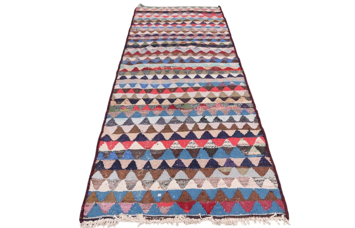 Kelim-Teppiche sind grundsätzlich flach gewebt und relativ leicht im Gewicht. Daher können sie auch effektvoll als Wanddekoration oder Bettüberwurf eingesetzt werden. Die charakteristische Kelim-Webtechnik mit Kette und farbigem Schussmaterial eignet sich hervorragend für zeitlose geometrische Muster und Abstraktionen aus Fauna und Flora. Auch bei modernen Kelim-Designs sind die Entwürfe häufig von traditioneller Symbolik inspiriert, wodurch der Kelim-Teppich seinen gefragten ethnischen Charme bewahrt.