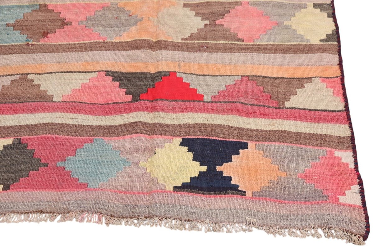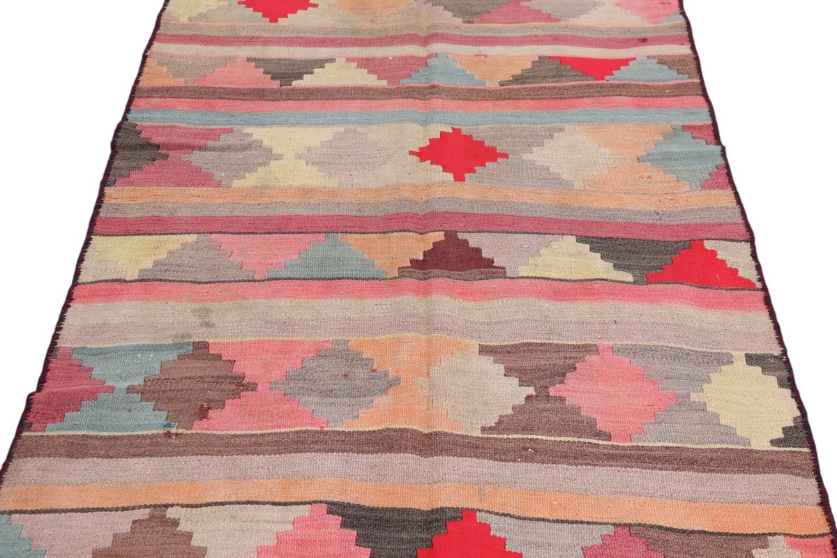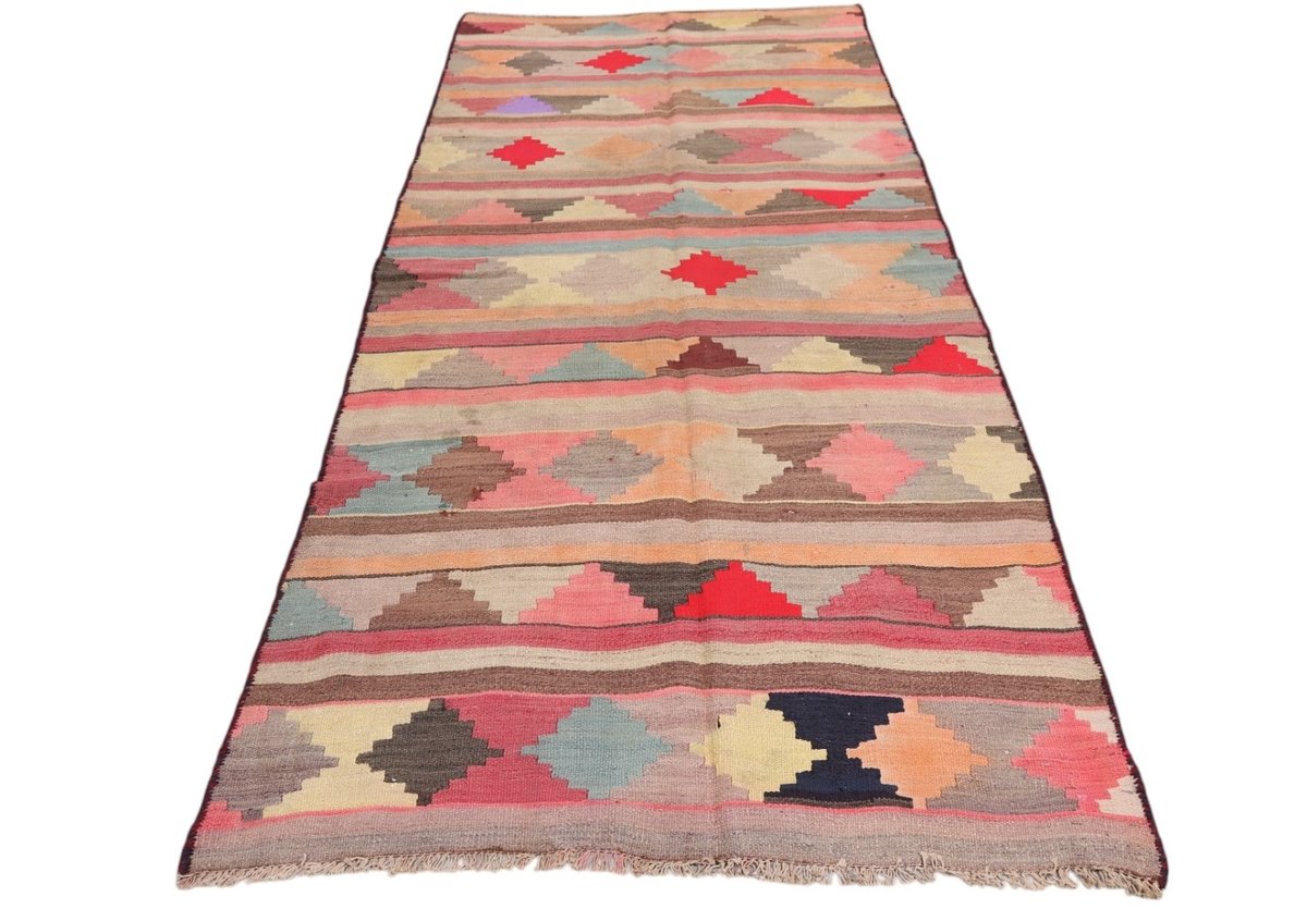 Kelim-Teppiche sind grundsätzlich flach gewebt und relativ leicht im Gewicht. Daher können sie auch effektvoll als Wanddekoration oder Bettüberwurf eingesetzt werden. Die charakteristische Kelim-Webtechnik mit Kette und farbigem Schussmaterial eignet sich hervorragend für zeitlose geometrische Muster und Abstraktionen aus Fauna und Flora. Auch bei modernen Kelim-Designs sind die Entwürfe häufig von traditioneller Symbolik inspiriert, wodurch der Kelim-Teppich seinen gefragten ethnischen Charme bewahrt.