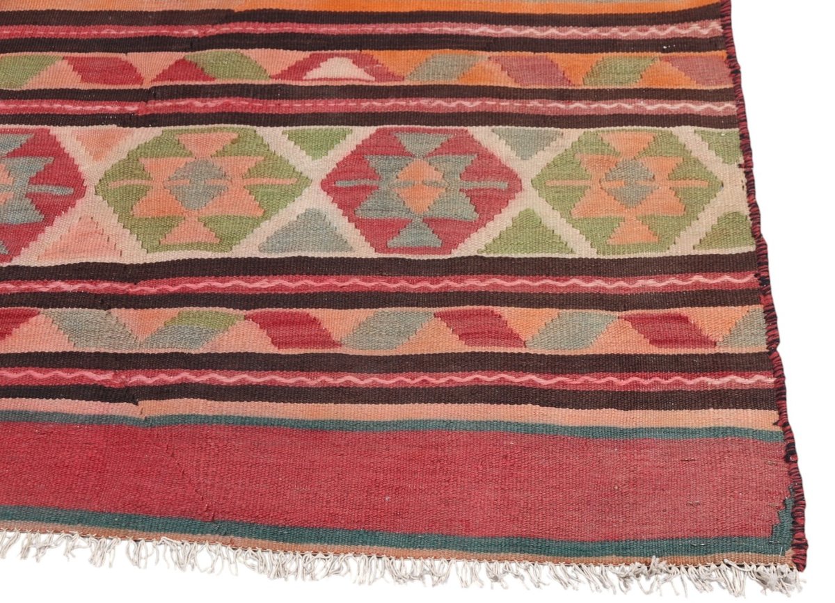 Kelim-Teppiche sind grundsätzlich flach gewebt und relativ leicht im Gewicht. Daher können sie auch effektvoll als Wanddekoration oder Bettüberwurf eingesetzt werden. Die charakteristische Kelim-Webtechnik mit Kette und farbigem Schussmaterial eignet sich hervorragend für zeitlose geometrische Muster und Abstraktionen aus Fauna und Flora. Auch bei modernen Kelim-Designs sind die Entwürfe häufig von traditioneller Symbolik inspiriert, wodurch der Kelim-Teppich seinen gefragten ethnischen Charme bewahrt.