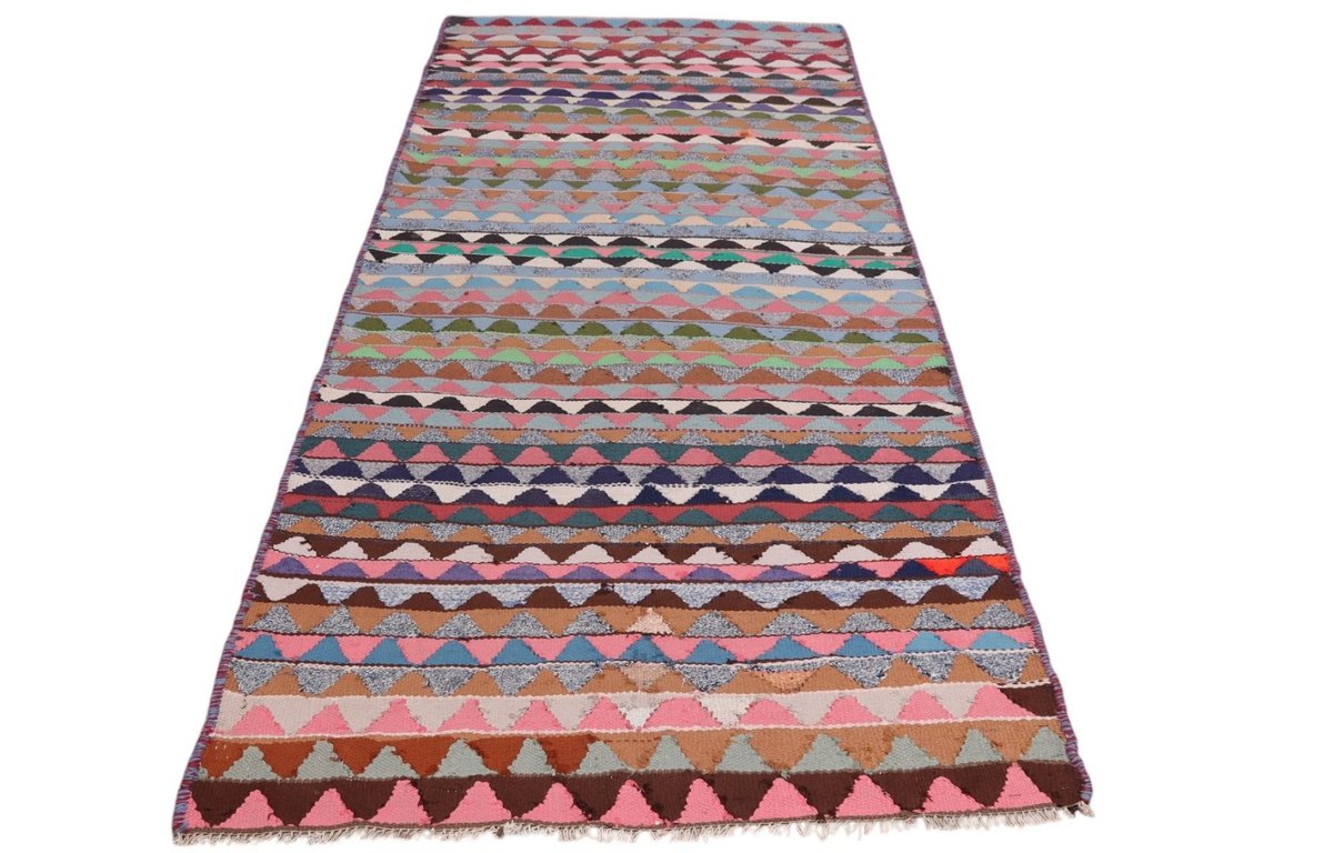 Kelim-Teppiche sind grundsätzlich flach gewebt und relativ leicht im Gewicht. Daher können sie auch effektvoll als Wanddekoration oder Bettüberwurf eingesetzt werden. Die charakteristische Kelim-Webtechnik mit Kette und farbigem Schussmaterial eignet sich hervorragend für zeitlose geometrische Muster und Abstraktionen aus Fauna und Flora. Auch bei modernen Kelim-Designs sind die Entwürfe häufig von traditioneller Symbolik inspiriert, wodurch der Kelim-Teppich seinen gefragten ethnischen Charme bewahrt.