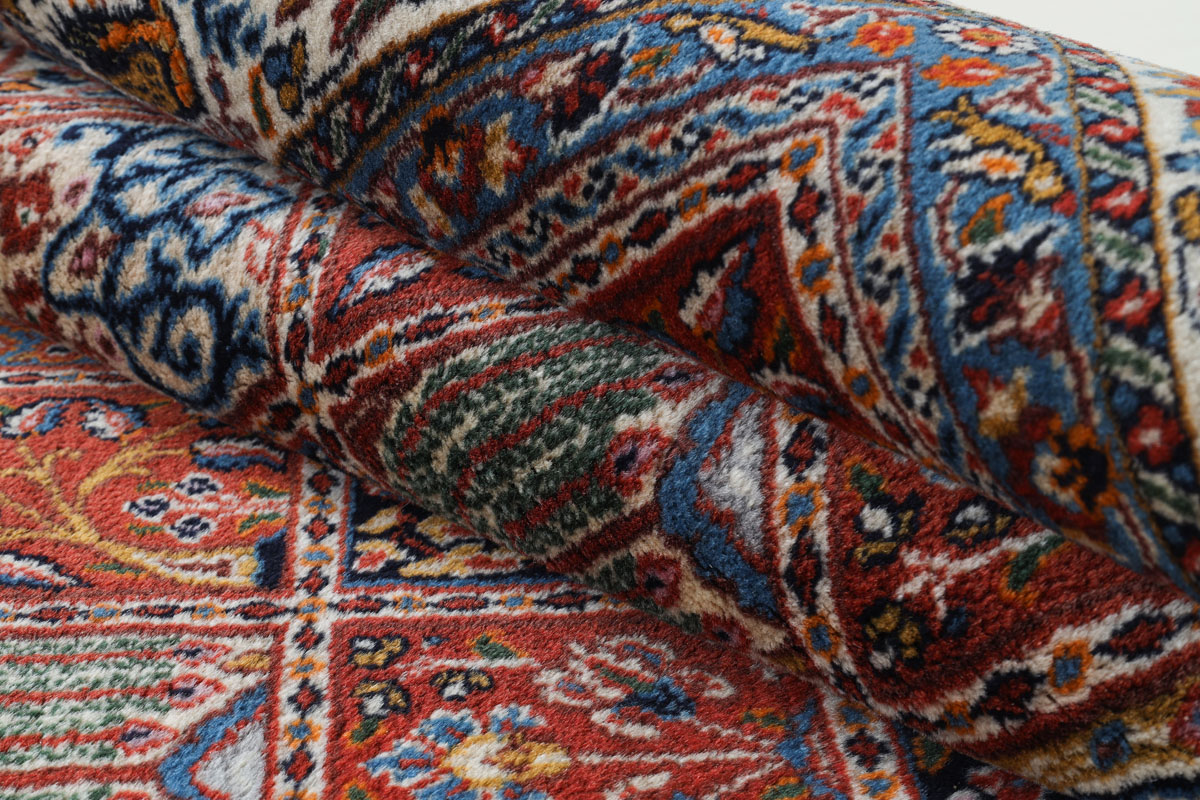 Der elegante Moud-Teppich wird aus hochwertiger Schurwolle – manchmal auch mit Seidenanteil – handgeknüpft und zählt dank seines filigranen Herati-Musters zu den Top Ten der edelsten Perserteppiche. Ein echter Moud-Teppich, den Sie günstig (bei mytepp) online kaufen können, stammt aus der weltberühmten, ostiranischen Teppichprovenienz Moud, die auch für ihre Safran-Produktion bekannt ist.