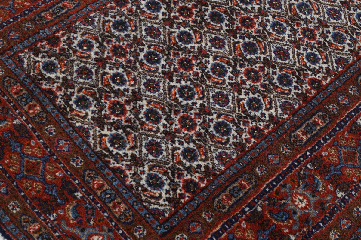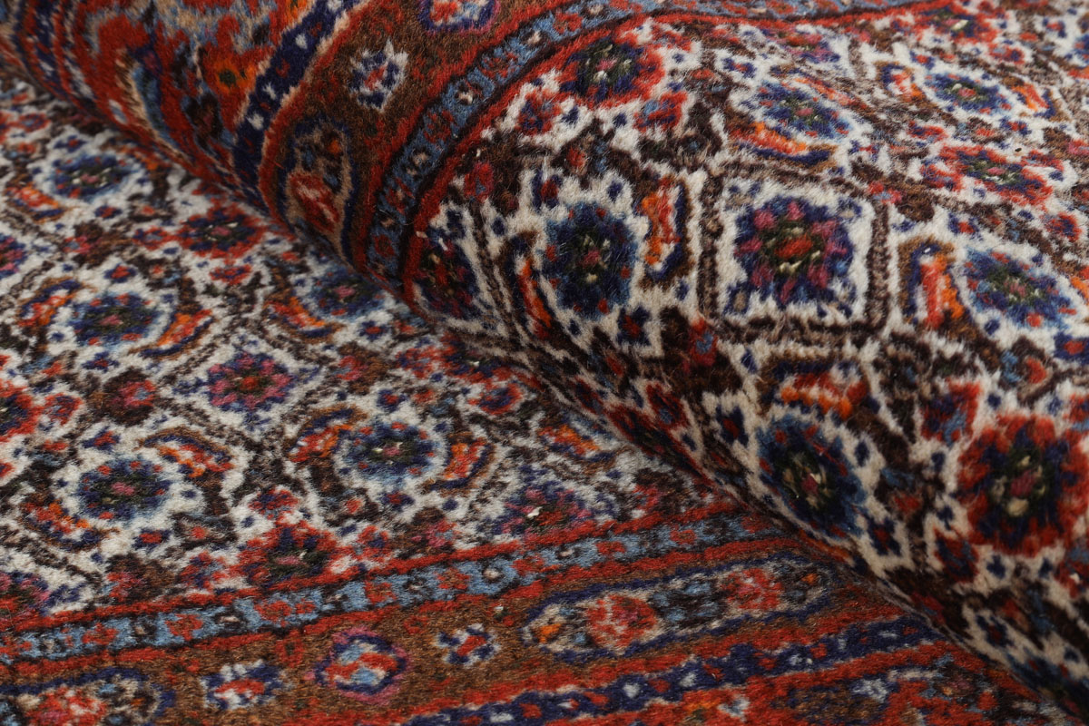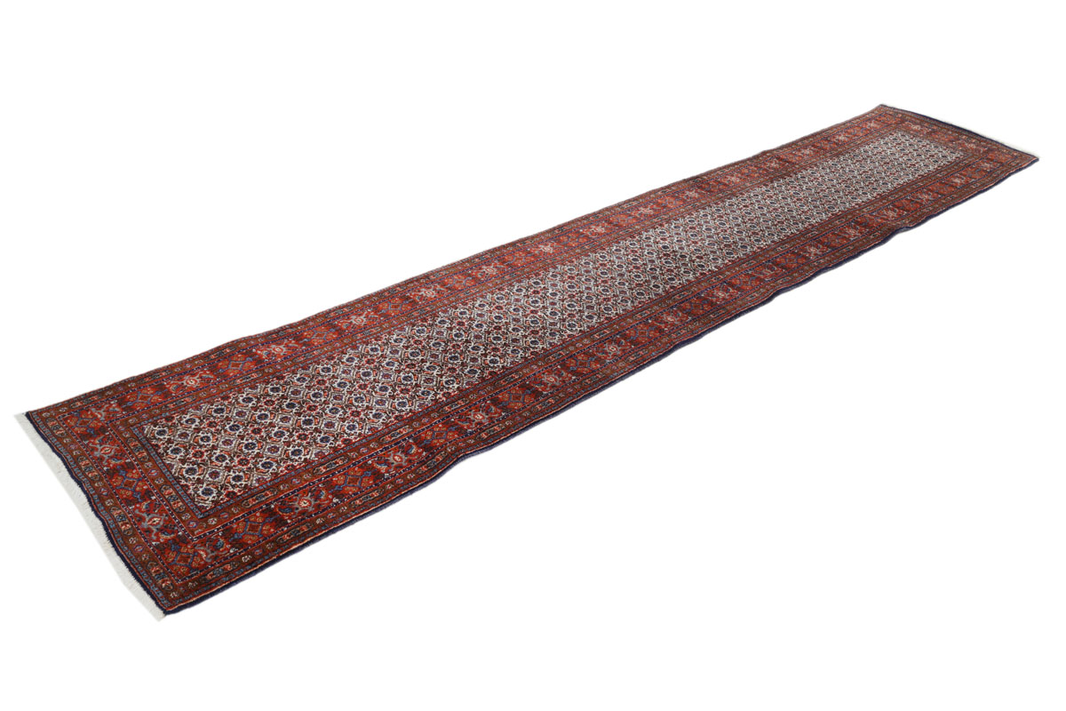 Die Muster können beim Hamadan-Orientteppich sehr vielfältig gestaltet sein, dennoch ist das klassische Herati-Muster mit Raute, stilisierten Blüten und flankierenden Blattmotiven häufig anzutreffen. Anders als bei gängigen Perserteppich-Arten handelt es sich beim symmetrisch geknüpften Hamadan-Perserteppich um Einschussware. Charakteristisch ist für den Hamadan-Orientteppich zudem sein Format, das oft in Brückengrößen von ca. 150×100 cm gehalten ist. Insgesamt gilt der Hamadan als guter Gebrauchsteppich, wobei eventuelle Qualitätsunterschiede vor allem an der jeweils verwendet Wolle gemessen werden.