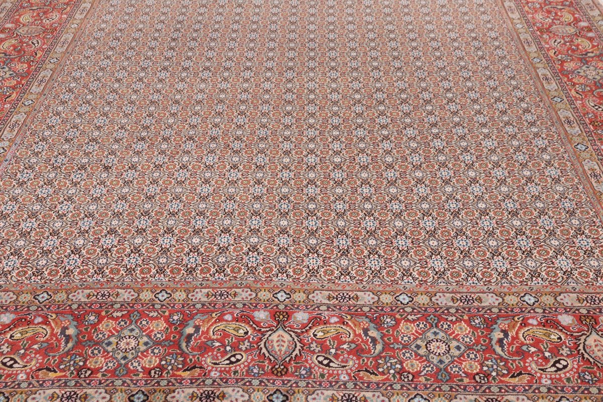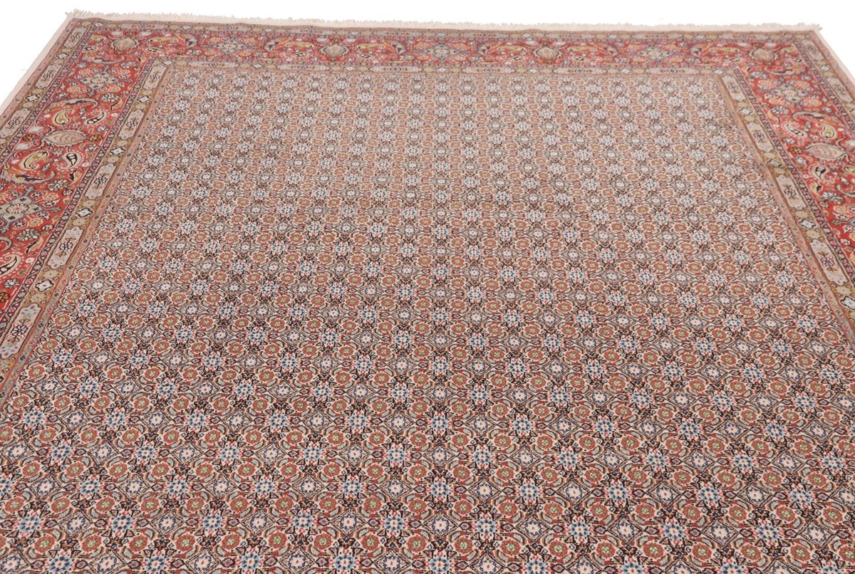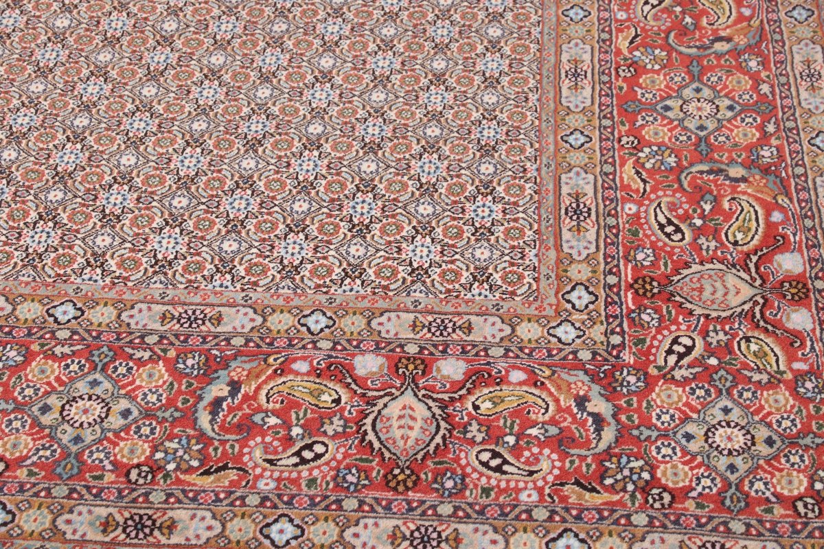 Der elegante Moud-Teppich wird aus hochwertiger Schurwolle – manchmal auch mit Seidenanteil – handgeknüpft und zählt dank seines filigranen Herati-Musters zu den Top Ten der edelsten Perserteppiche. Ein echter Moud-Teppich, den Sie günstig (bei mytepp) online kaufen können, stammt aus der weltberühmten, ostiranischen Teppichprovenienz Moud, die auch für ihre Safran-Produktion bekannt ist.