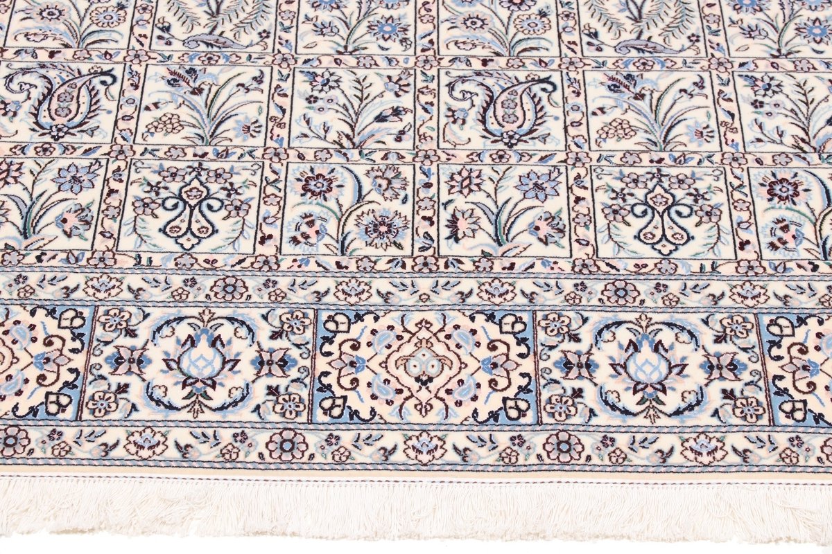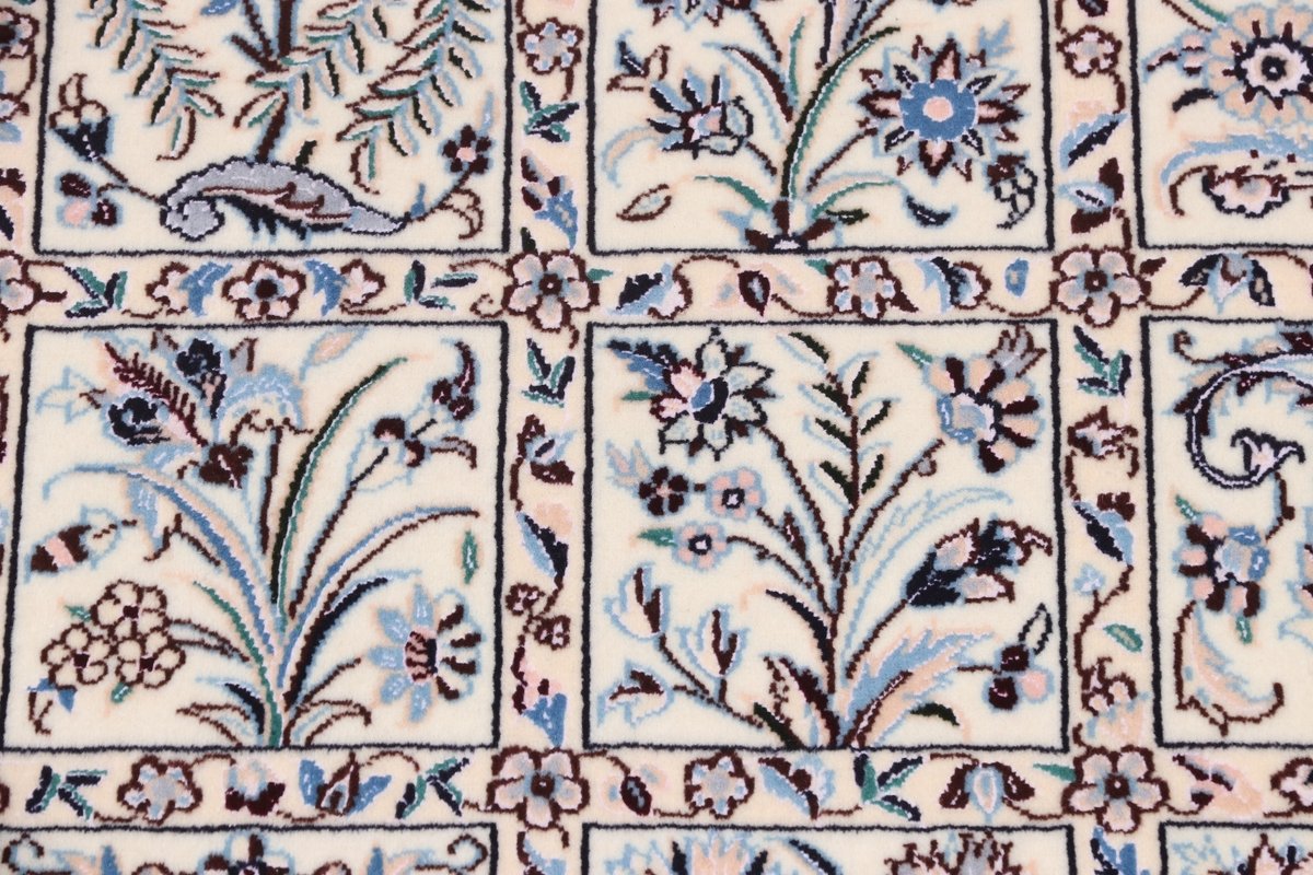 Die Knüpfqualität eines Nainteppichs wird in La gemessen, was die Faseranzahl der Kettfäden bezeichnet – je geringer diese ist, umso feiner ist der Perserteppich geknüpft. 9 La, 6 La und 4 La Qualitäten sind recht oft anzutreffen, wobei die niedrigste Zahl für eine extra-feine Knüpfung von über 1.000.000 Knoten/m² steht. Als Experten präsentieren wir Ihnen auf mytepp.de eine Auswahl hochwertiger Nain-Knüpfkunstwerke, die Sie nach Belieben online kaufen können. Neben den gängigen (9,6,4)La-Qualitäten halten wir exklusivste 2 La-Nainteppiche bereit – auch diesbezügliche Anfragen nehmen wir gerne entgegen.