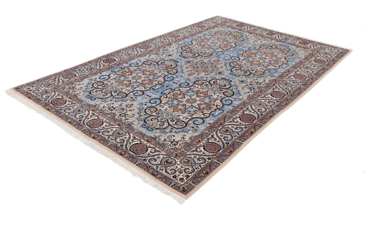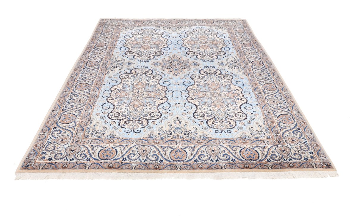 Östlich der iranischen Kulturmetropole Isfahan liegt die Oasenstadt Nain, die als Zentrum der Orientteppich-Produktion Weltruhm erlangt hat. Aus den Manufakturen dieser Stadt stammt der edle Nain-Perserteppich, der mit seinem filigranen Arabesken-Muster an den Isfahan-Orientteppich erinnert, diesen jedoch hinsichtlich der Knüpfdichte häufig übertrifft. Traditionell ist der Nain-Perserteppich in dezenten Blau-, Weiß- und Beigetönen gehalten. Bei mytepp.de lassen sich außerdem weitere Nain-Farbvariationen online kaufen, die gleichfalls zu modernen und repräsentativen Wohnungseinrichtungen passen.