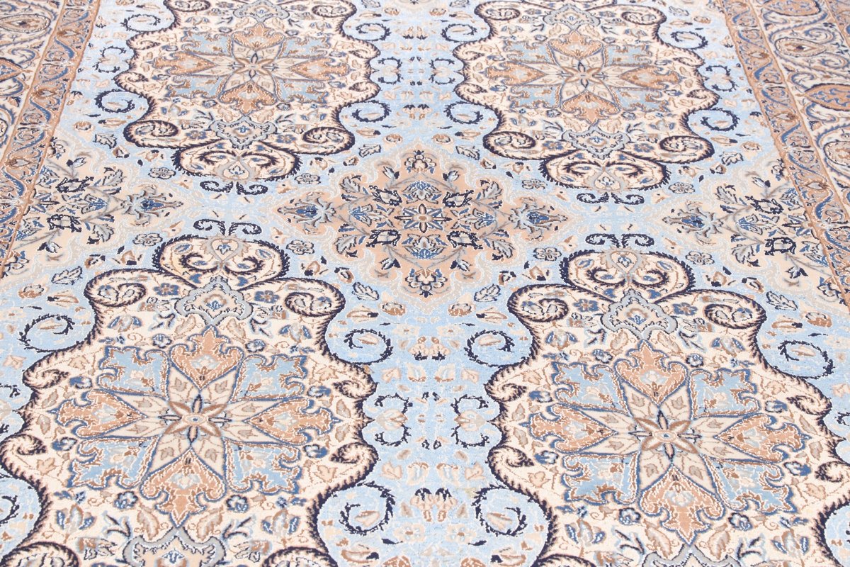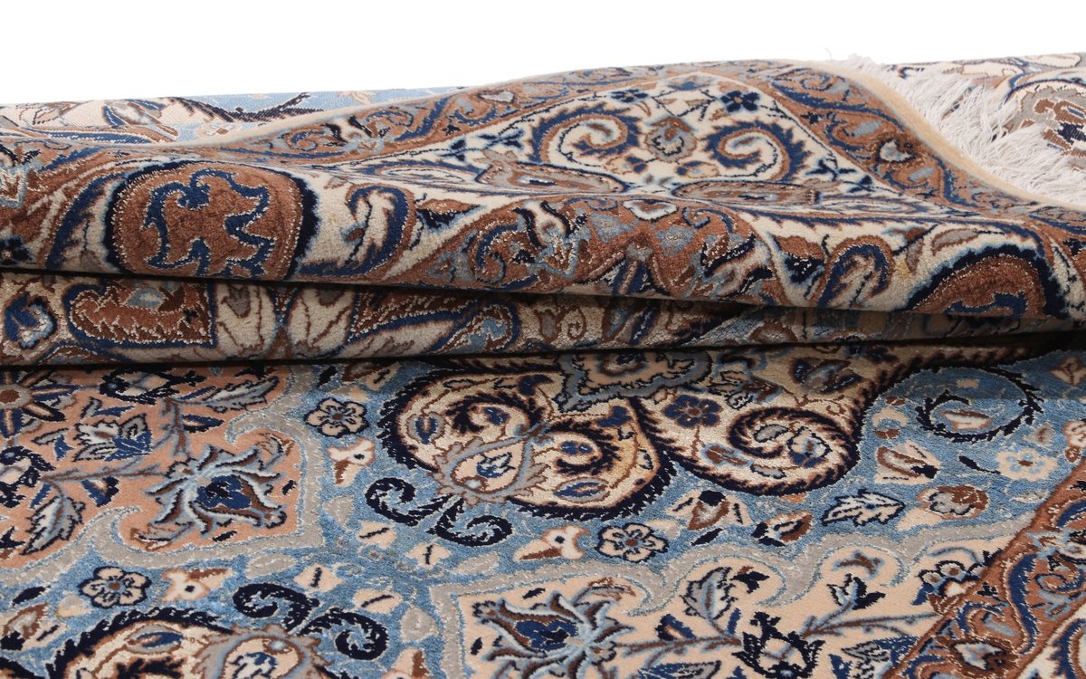 Die Knüpfqualität eines Nainteppichs wird in La gemessen, was die Faseranzahl der Kettfäden bezeichnet – je geringer diese ist, umso feiner ist der Perserteppich geknüpft. 9 La, 6 La und 4 La Qualitäten sind recht oft anzutreffen, wobei die niedrigste Zahl für eine extra-feine Knüpfung von über 1.000.000 Knoten/m² steht. Als Experten präsentieren wir Ihnen auf mytepp.de eine Auswahl hochwertiger Nain-Knüpfkunstwerke, die Sie nach Belieben online kaufen können. Neben den gängigen (9,6,4)La-Qualitäten halten wir exklusivste 2 La-Nainteppiche bereit – auch diesbezügliche Anfragen nehmen wir gerne entgegen.