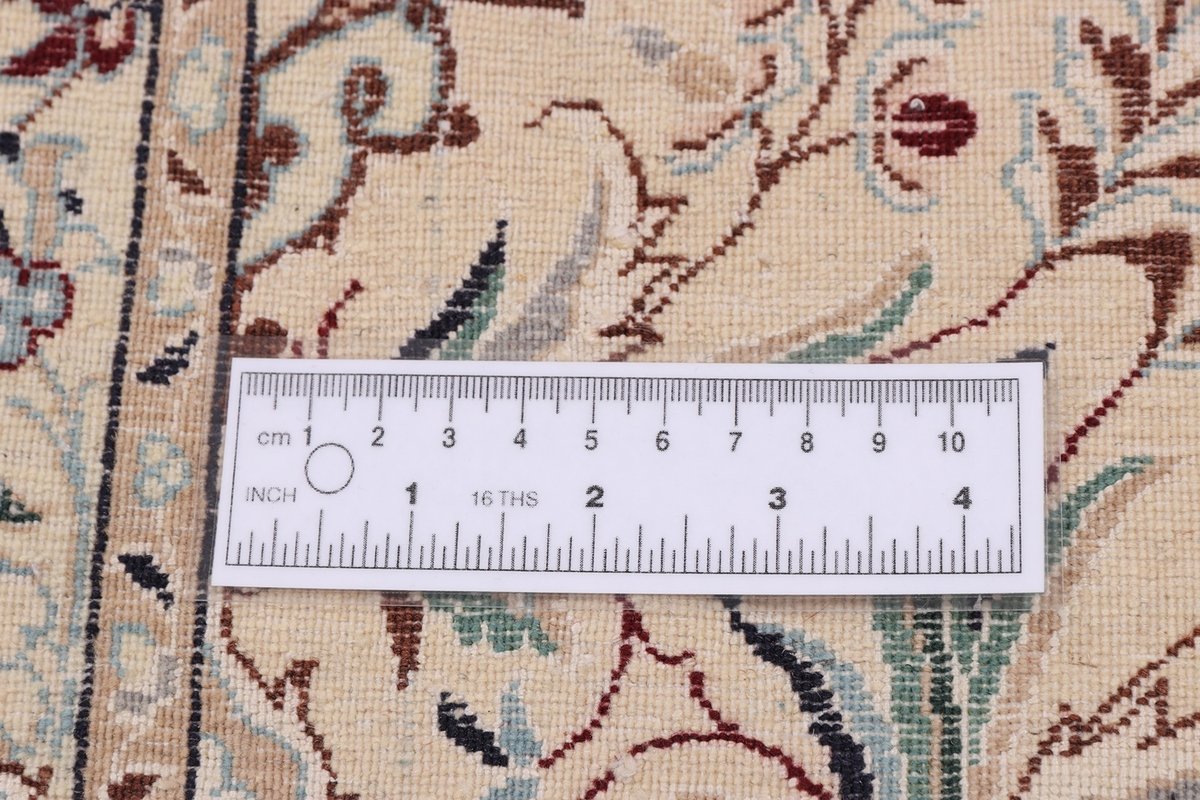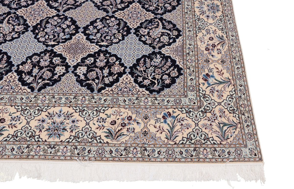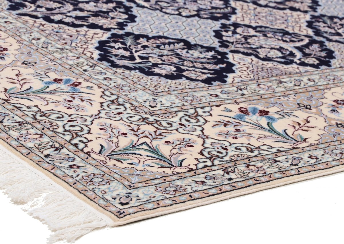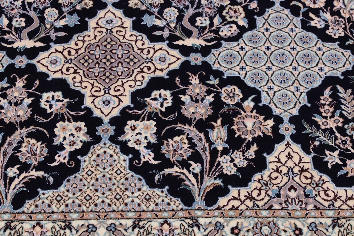 Die Knüpfqualität eines Nainteppichs wird in La gemessen, was die Faseranzahl der Kettfäden bezeichnet – je geringer diese ist, umso feiner ist der Perserteppich geknüpft. 9 La, 6 La und 4 La Qualitäten sind recht oft anzutreffen, wobei die niedrigste Zahl für eine extra-feine Knüpfung von über 1.000.000 Knoten/m² steht. Als Experten präsentieren wir Ihnen auf mytepp.de eine Auswahl hochwertiger Nain-Knüpfkunstwerke, die Sie nach Belieben online kaufen können. Neben den gängigen (9,6,4)La-Qualitäten halten wir exklusivste 2 La-Nainteppiche bereit – auch diesbezügliche Anfragen nehmen wir gerne entgegen.