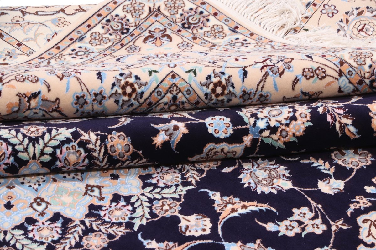 Die Knüpfqualität eines Nainteppichs wird in La gemessen, was die Faseranzahl der Kettfäden bezeichnet – je geringer diese ist, umso feiner ist der Perserteppich geknüpft. 9 La, 6 La und 4 La Qualitäten sind recht oft anzutreffen, wobei die niedrigste Zahl für eine extra-feine Knüpfung von über 1.000.000 Knoten/m² steht. Als Experten präsentieren wir Ihnen auf mytepp.de eine Auswahl hochwertiger Nain-Knüpfkunstwerke, die Sie nach Belieben online kaufen können. Neben den gängigen (9,6,4)La-Qualitäten halten wir exklusivste 2 La-Nainteppiche bereit – auch diesbezügliche Anfragen nehmen wir gerne entgegen.