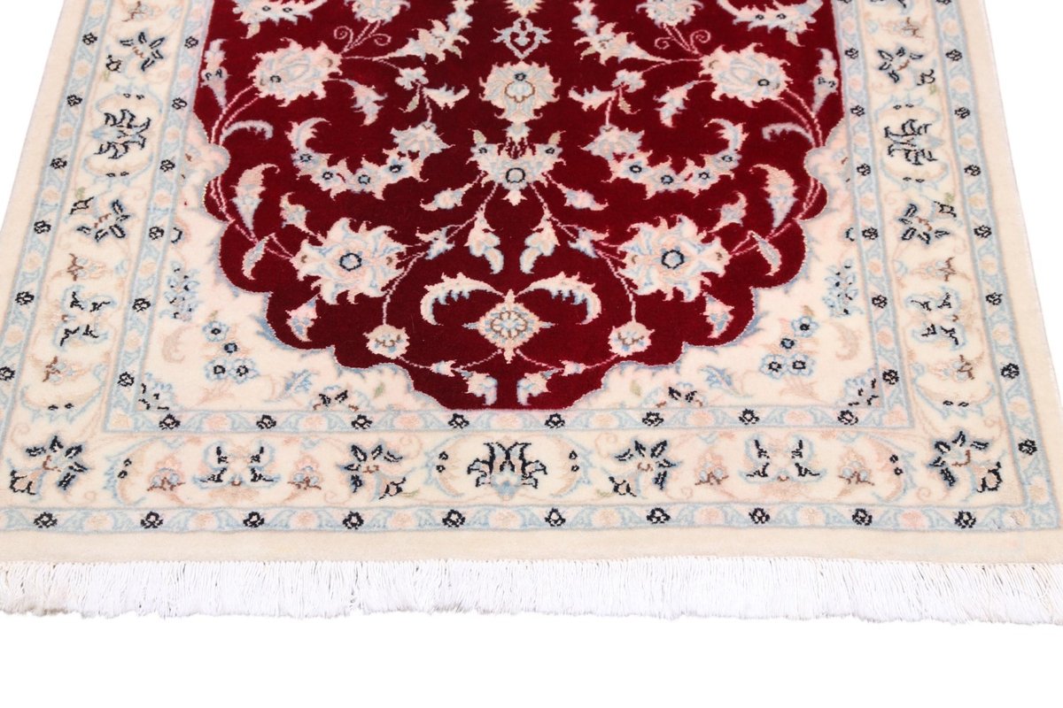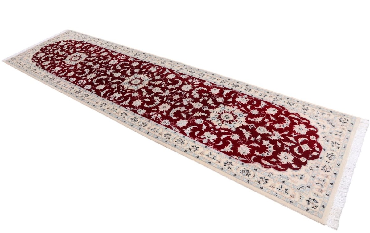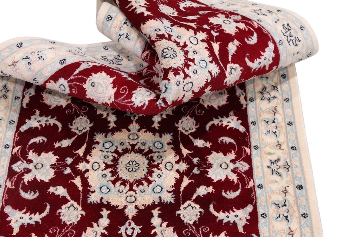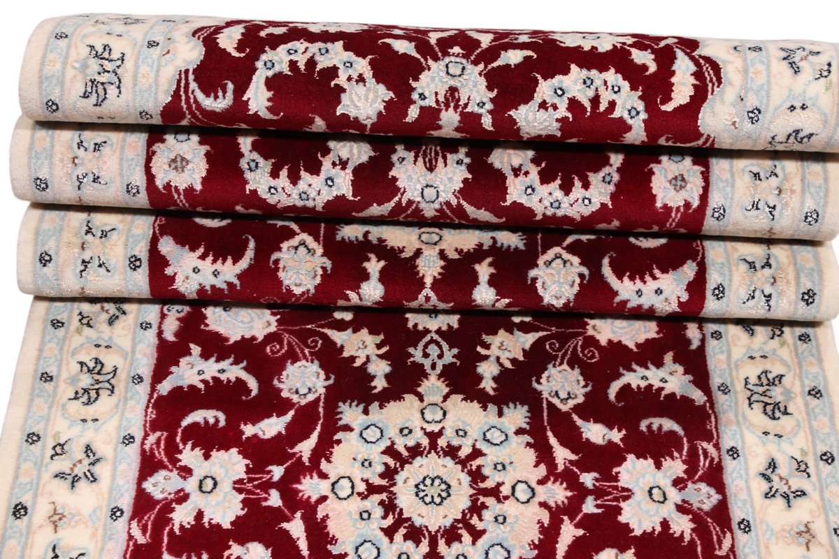 Die Knüpfqualität eines Nainteppichs wird in La gemessen, was die Faseranzahl der Kettfäden bezeichnet – je geringer diese ist, umso feiner ist der Perserteppich geknüpft. 9 La, 6 La und 4 La Qualitäten sind recht oft anzutreffen, wobei die niedrigste Zahl für eine extra-feine Knüpfung von über 1.000.000 Knoten/m² steht. Als Experten präsentieren wir Ihnen auf mytepp.de eine Auswahl hochwertiger Nain-Knüpfkunstwerke, die Sie nach Belieben online kaufen können. Neben den gängigen (9,6,4)La-Qualitäten halten wir exklusivste 2 La-Nainteppiche bereit – auch diesbezügliche Anfragen nehmen wir gerne entgegen.