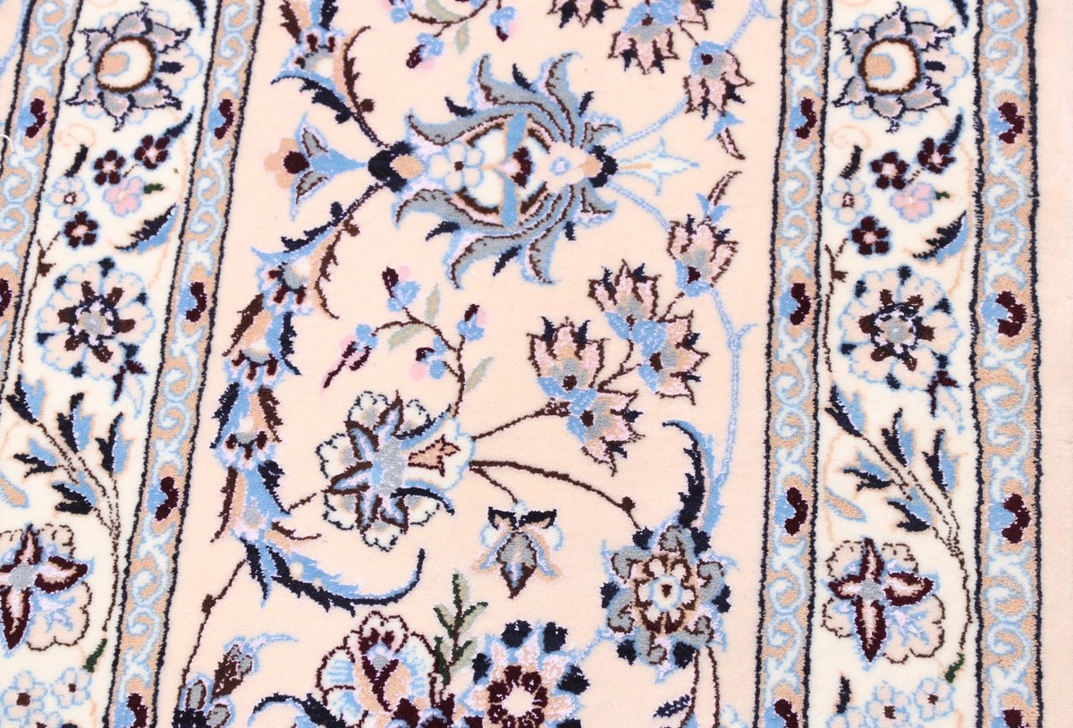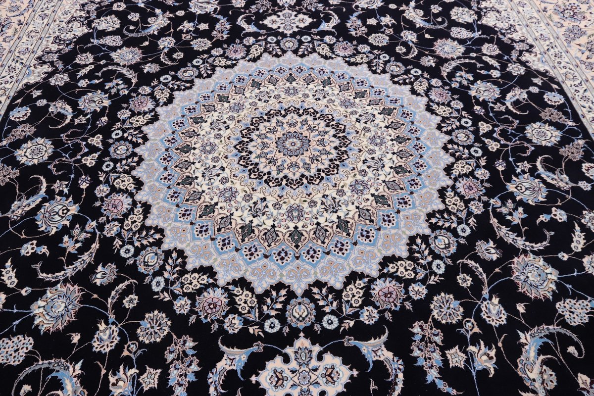 Die Knüpfqualität eines Nainteppichs wird in La gemessen, was die Faseranzahl der Kettfäden bezeichnet – je geringer diese ist, umso feiner ist der Perserteppich geknüpft. 9 La, 6 La und 4 La Qualitäten sind recht oft anzutreffen, wobei die niedrigste Zahl für eine extra-feine Knüpfung von über 1.000.000 Knoten/m² steht. Als Experten präsentieren wir Ihnen auf mytepp.de eine Auswahl hochwertiger Nain-Knüpfkunstwerke, die Sie nach Belieben online kaufen können. Neben den gängigen (9,6,4)La-Qualitäten halten wir exklusivste 2 La-Nainteppiche bereit – auch diesbezügliche Anfragen nehmen wir gerne entgegen.
