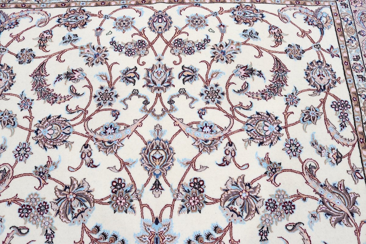 Die Knüpfqualität eines Nainteppichs wird in La gemessen, was die Faseranzahl der Kettfäden bezeichnet – je geringer diese ist, umso feiner ist der Perserteppich geknüpft. 9 La, 6 La und 4 La Qualitäten sind recht oft anzutreffen, wobei die niedrigste Zahl für eine extra-feine Knüpfung von über 1.000.000 Knoten/m² steht. Als Experten präsentieren wir Ihnen auf mytepp.de eine Auswahl hochwertiger Nain-Knüpfkunstwerke, die Sie nach Belieben online kaufen können. Neben den gängigen (9,6,4)La-Qualitäten halten wir exklusivste 2 La-Nainteppiche bereit – auch diesbezügliche Anfragen nehmen wir gerne entgegen.